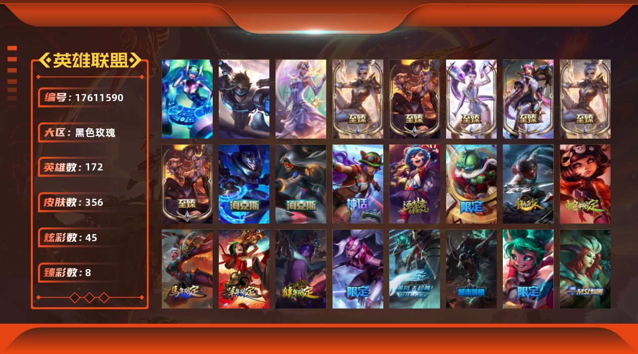 [17611590]可二次【特价出售/店主推荐】未定级段位-172英雄-356皮肤-45炫彩-3终极-10神话-66限定-56传说-119史诗