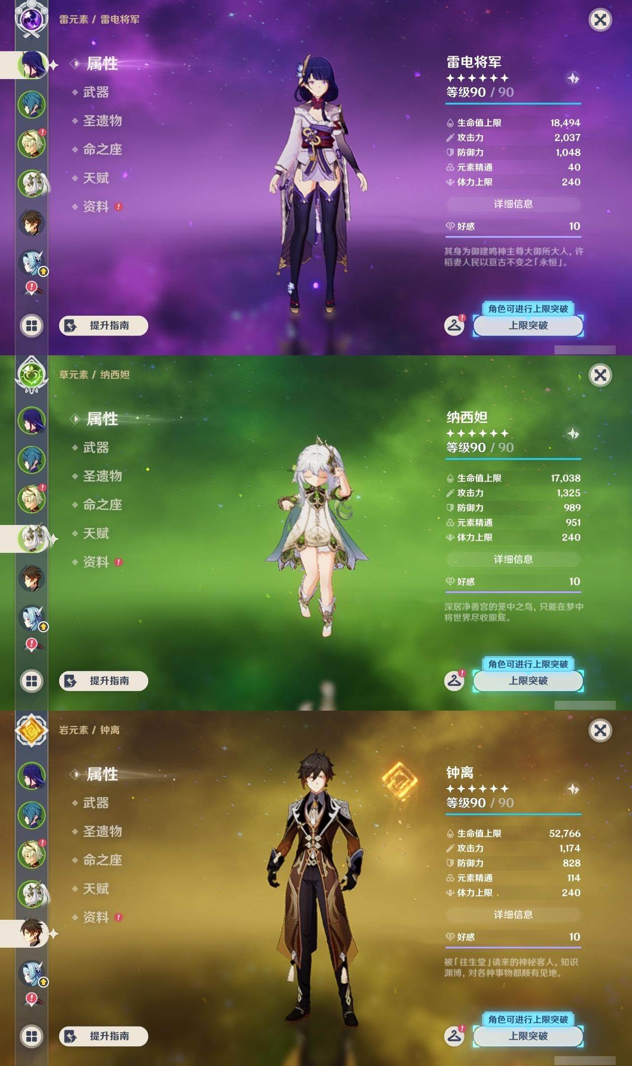 雷电将军,钟离,优菈,甘雨,胡桃,枫原万叶,刻晴,七七,莫娜,琴