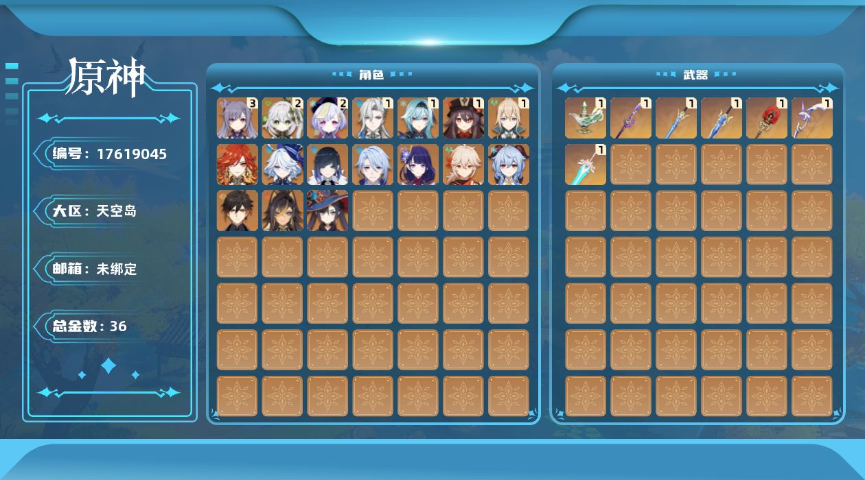 [17619045]58级/36黄/男主/17个五星角色/8个五星武器