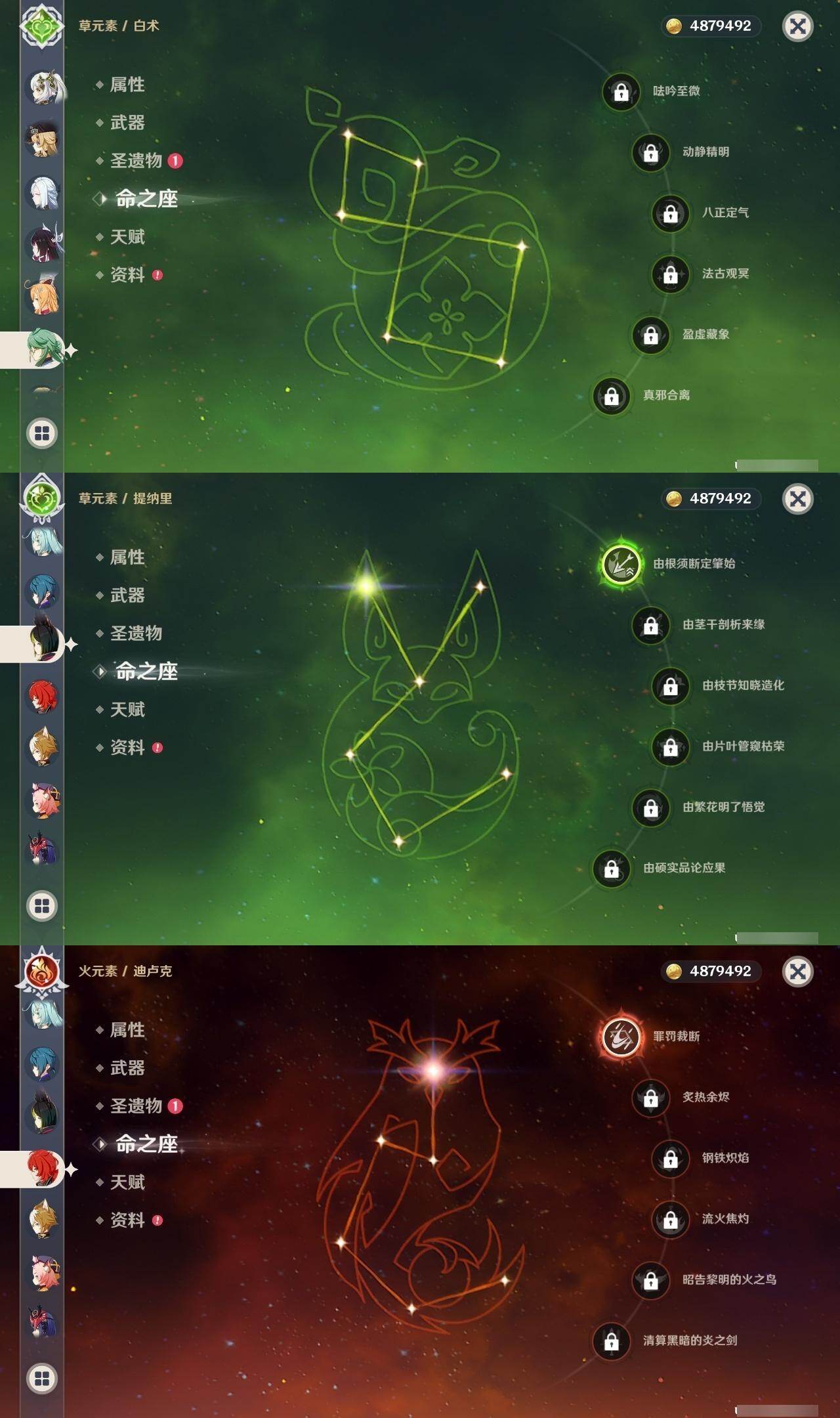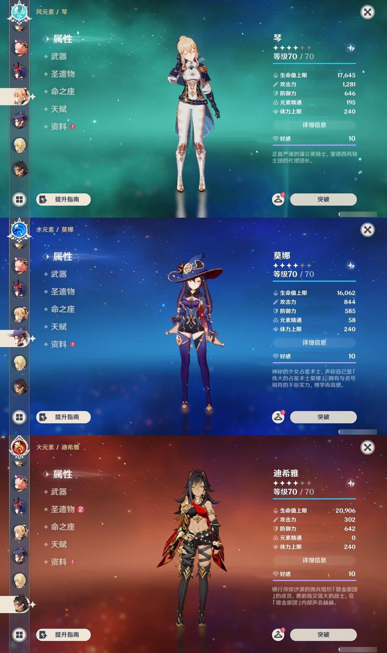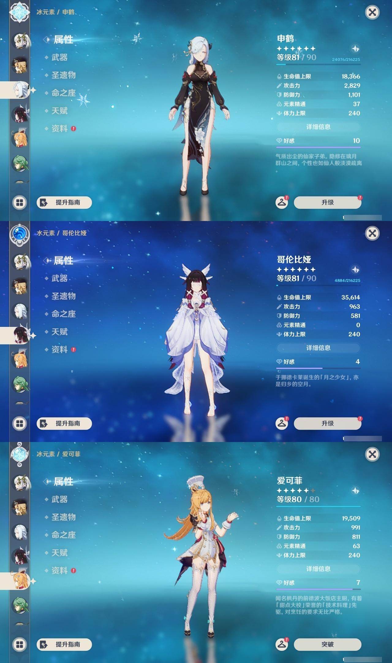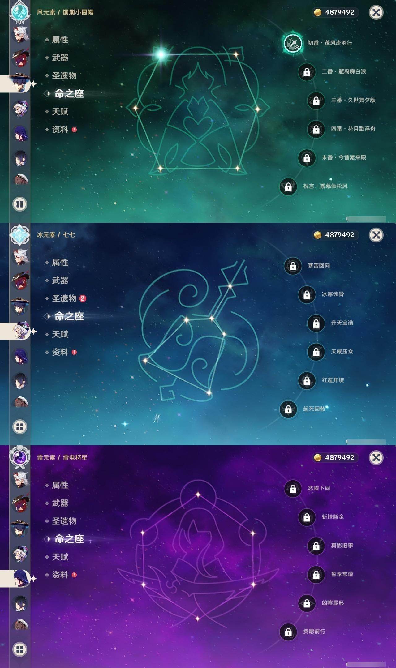 0命阿蕾奇诺,0命娜维娅,0命芙宁娜,0命那维莱特,0命白术,3命迪希雅,1命流浪者,0命纳西妲,1命提纳里,1命夜兰,0命神里绫人,0命申鹤,0命荒泷一斗,0命雷电将军,1命枫原万叶,0命钟离,0命胡桃,2命刻晴,0命七七,2命琴,2命莫娜,1命迪卢克,0命恰斯卡,0命梦见月瑞希,0命爱可菲,0命哥伦比娅,精1裁断,精1万世流涌大典,精1神乐之真意,精1飞雷之弦振,精1护摩之杖,精1四风原典,精1和璞鸢,精2天空之翼,精1天空之卷,精1天空之傲