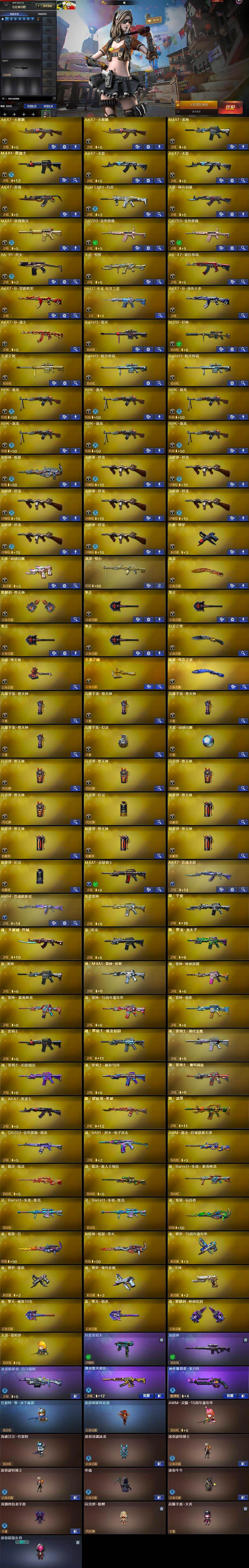 【人偶武器】:天龙-曼陀罗,巴雷特-零-水下丽影,迷你地狱终结者,AWM-灵狐-15周年嘉年华,海滩汪汪-巴雷特,迷你深渊冰龙,迷你波特博士*2,夺魂,迷你牛牛,深渊终结者手雷,闪光弹-貂蝉,高爆手雷-大乔,迷你超能女侍