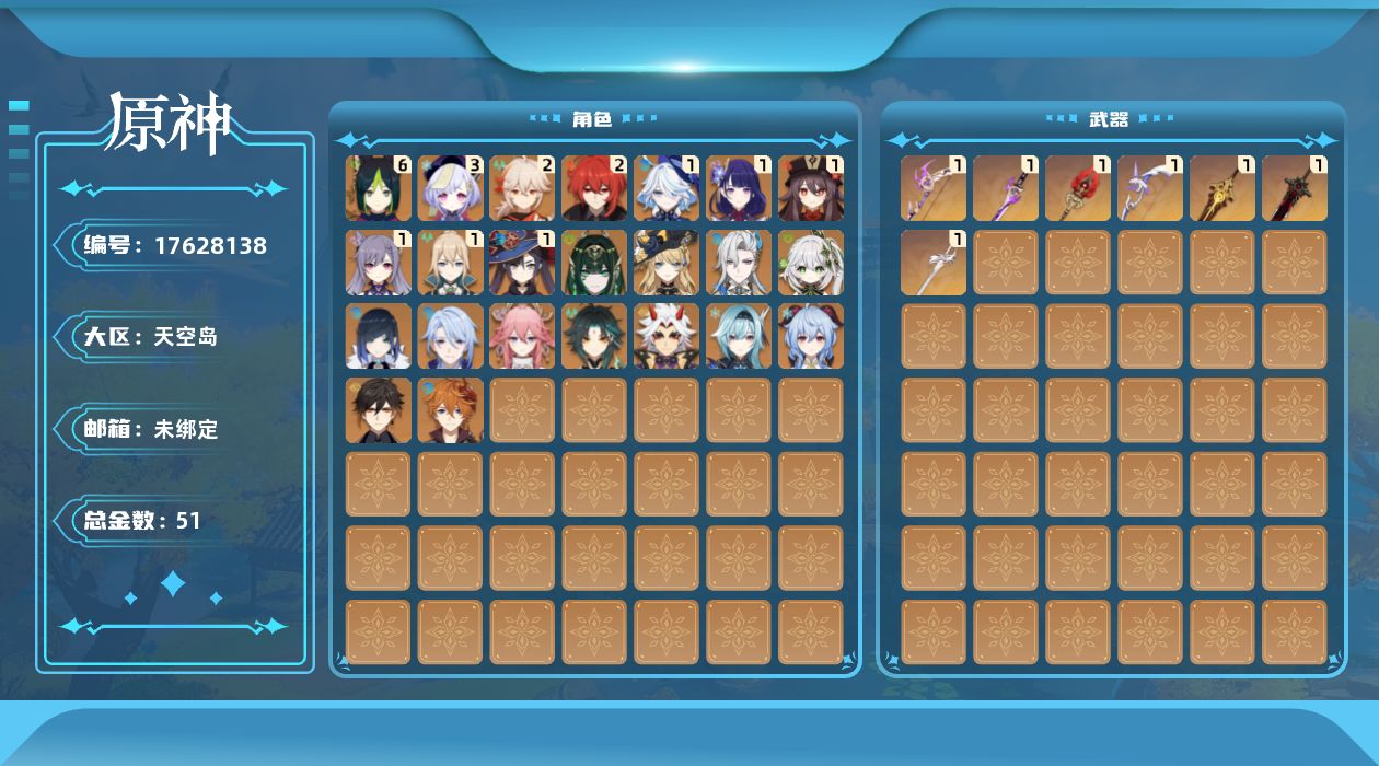 [17628138]60级/51黄/女主/23个五星角色/9个五星武器