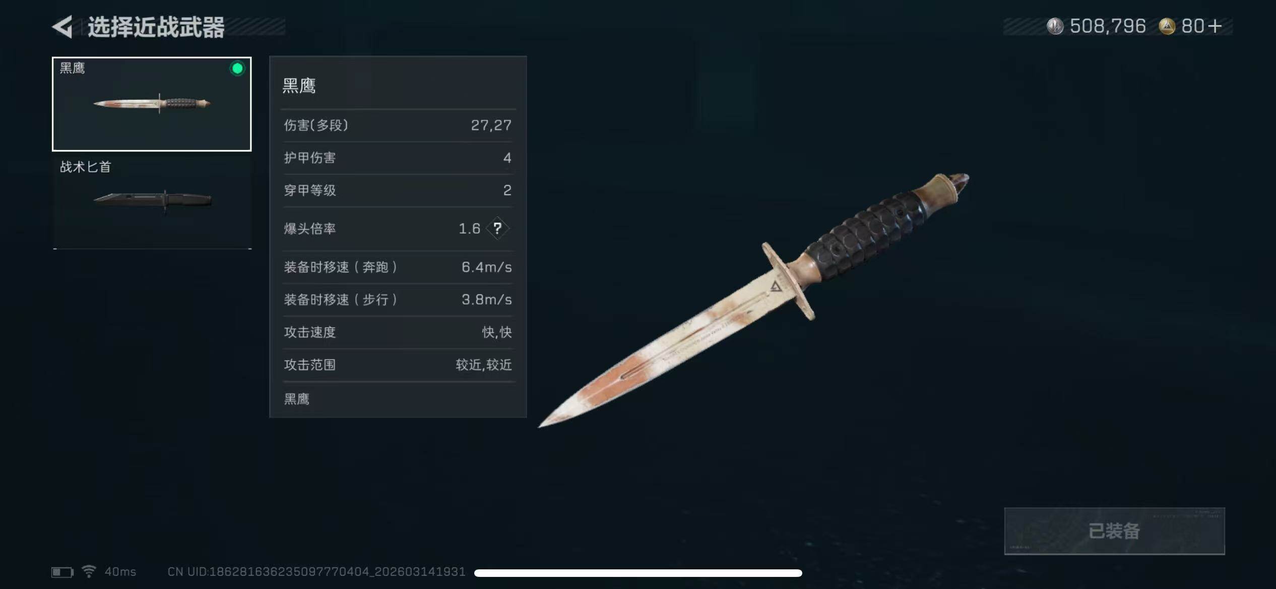 【近战皮肤】:近战-黑鹰