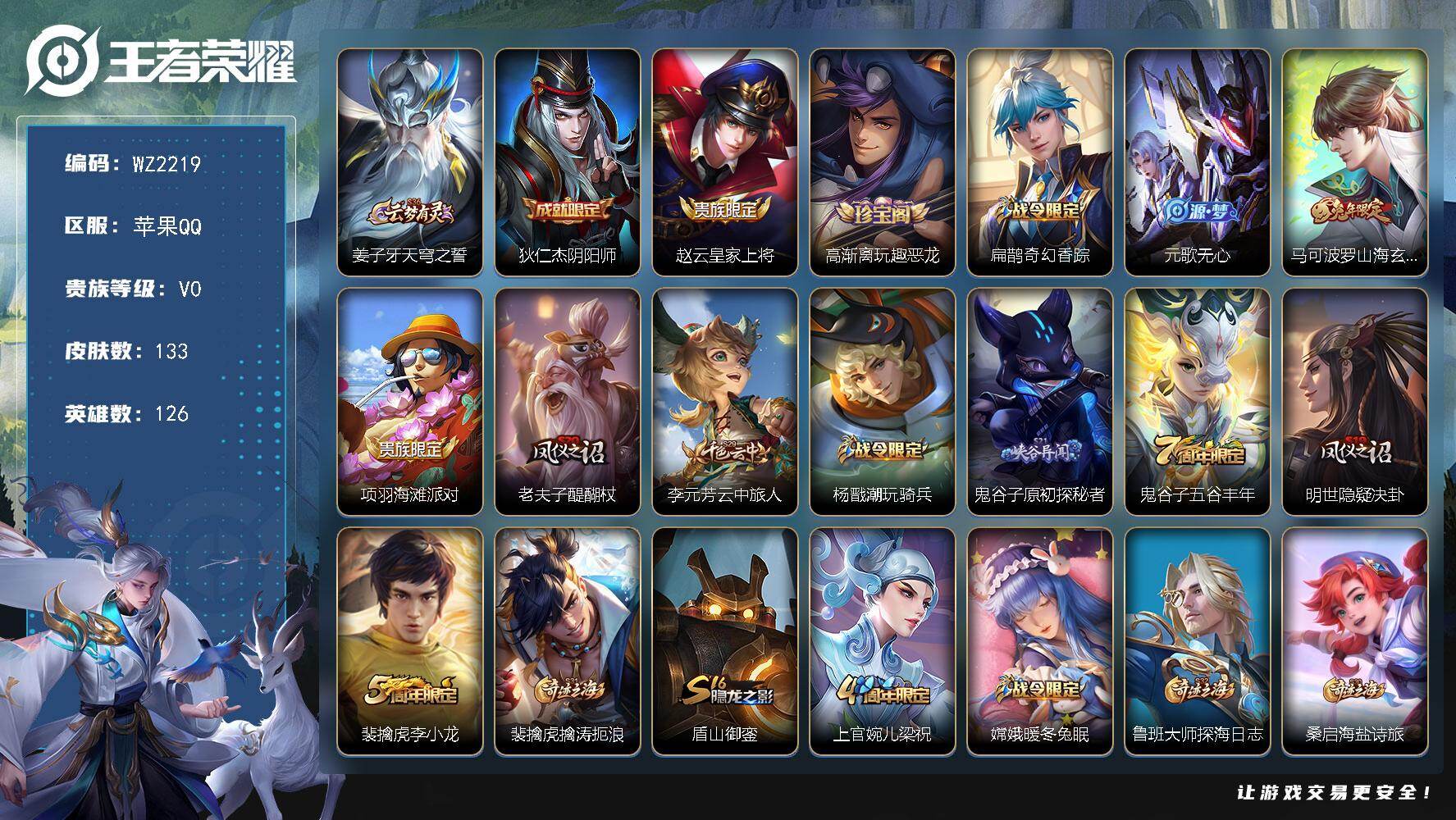 - [13680941]【店主推荐捡漏号!可直接换绑/42段打野/34段中路/33段发育/九千八省50镜/4省标10市标】:苹果Q-V10-最强王者段位-128英雄-514皮肤-7典藏-8星元-58传说-179史诗 【英雄全皮】:阿轲全皮,刘邦全皮,孙权全皮,娜可露露全皮,橘右京全皮,钟馗全皮,太乙真人全皮,苏烈全皮,狂铁全皮,李信全皮,盾山全皮,猪八戒全皮,鲁班大师全皮,蒙恬全皮,金蝉全皮,空空儿全皮,影全皮 【荣耀典藏】:武则天英雄,武则天倪克斯神谕,夏侯惇无限飓风号,小乔天鹅之梦,李白鸣剑曳影,诸葛亮星域神启,关羽赤影疾锋,貂蝉幻阙歌 【传说皮肤】:后羿神树通天,云缨幻光神枪,桑启鸣野蒿,艾琳觅芳踪,马可波罗妄想实况,虞姬无限倾心,项羽无限倾心,孙悟空齐天大圣,李信山海炽霜斩,狄仁杰神器狴犴令,不知火舞绯月行,王昭君星穹之声,橘右京枫霜尽,娜可露露前尘镜,马可波罗深海之息,后羿无尽星芒,马超无双飞将,大乔挚爱花嫁,孙策挚爱之约,露娜启示之音,女娲补天,瑶时之祈愿,裴擒虎寅虎赤拳,鲁班七号寅虎瑞焰,孙尚香异界灵契,貂蝉遇见胡旋,赵云淬星耀世,王昭君乞巧织情,西施游龙清影,曜李逍遥 ,兰陵王默契交锋,公孙离祈雪灵祝,诸葛亮时雨天司,铠绛天战甲,镜炽阳神光,虞姬启明星使,孙悟空零号赤焰,关羽武圣,曜云鹰飞将,李信一念神魔,刘备时之恋人,伽罗太华,貂蝉猫影幻舞,干将莫邪久胜战神,虞姬云霓雀翎,达摩黄金狮子座,百里玄策白虎志,花木兰冠军飞将,后羿黄金射手座,杨戬永曜之星,诸葛亮武陵仙君,貂蝉仲夏夜之梦,李白凤求凰,孙尚香末日机甲,宫本武藏地狱之眼,孙悟空地狱火,吕布天魔缭乱,武则天海洋之心 【限定皮肤】:白起狰,蒙犽顽岩魄,姜子牙天穹之誓,杨戬破阵退雄兵,狄仁杰阴阳师,小乔纯白花嫁,虞姬凯尔特女王,廉颇寅虎御盾,赵云皇家上将,赵云引擎之心,赵云龙胆,赵云百木心枪,墨子神迹守卫,墨子降魔,妲己热情桑巴,妲己时之奇旅,嬴政优雅恋人,嬴政白昼王子,孙尚香异界灵契,鲁班七号狮舞东方,鲁班七号乒乒小将,鲁班七号寅虎瑞焰,庄周高山流水,高渐离死亡摇滚,阿轲迷踪丽影,钟无艳王者之锤,钟无艳超时空战士,孙膑天狼运算者,孙膑寅虎展翼,扁鹊炼金王,白起夜都怪侠,芈月重明,芈月白晶晶,芈月幻夜卜梦,吕布天魔缭乱,吕布猎兽之王,吕布御风骁将,周瑜真爱至上,周瑜赤莲之焰,元歌云间偶戏,元歌无心,夏侯惇朔风刀,夏侯惇匿