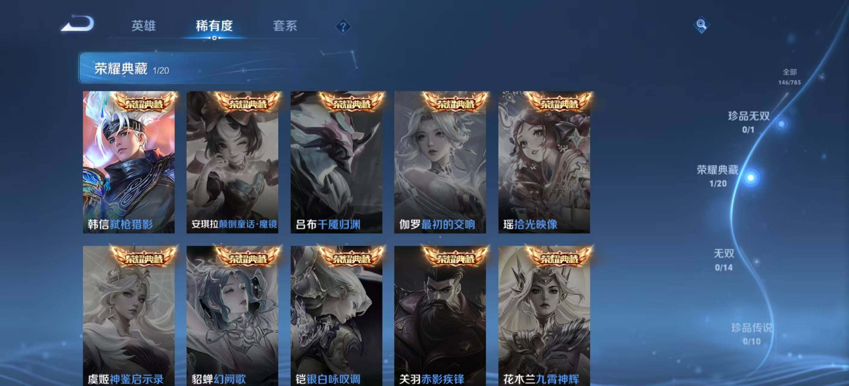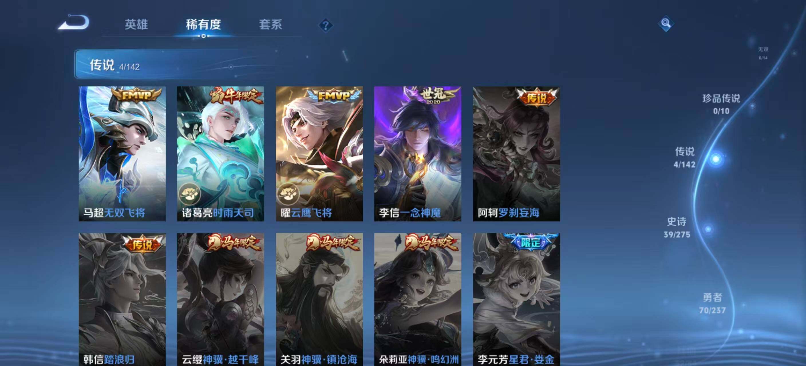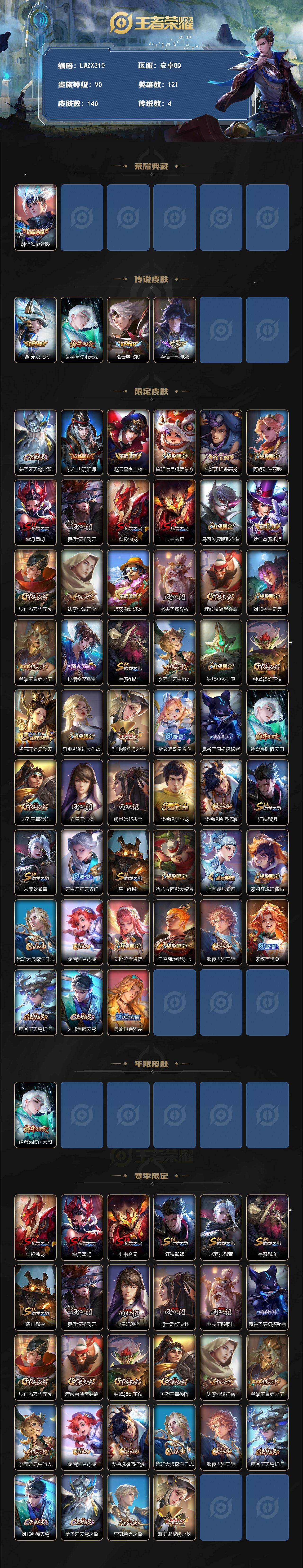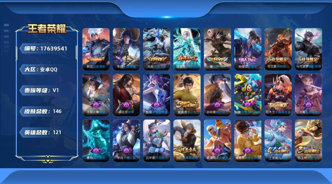 [17639541]安卓Q-V0-至尊星耀I段位-121英雄-146皮肤-1典藏皮肤-4传说-39史诗
