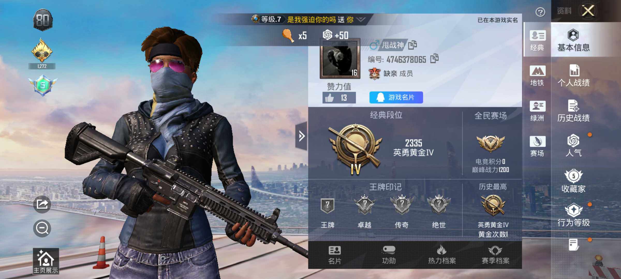 - [15377982]19m总资产-1246k哈伏币-60烽火等级-铂金-11战场等级-列兵 【干员外观】:红狼-蚀金玫瑰,无名-夜鹰,深蓝-不破誓约,红狼-电锯惊魂 【近战皮肤】:近战-北极星,近战-黑鹰 【传说外观】:M4A1突击步枪-蚀金玫瑰,M4A1突击步枪-阿米娅,ASh-12战斗步枪-鹅鸭杀,SG552突击步枪-运动员,AK-12突击步枪-夜鹰,AK-12突击步枪-特斯拉线圈,SCAR-H战斗步枪-启航,G3战斗步枪-骑士,CAR-15突击步枪-黑鹰坠落,K437突击步枪-北极星,KC17突击步枪-电锯惊魂,Vector冲锋枪-能天使-午夜邮差,UZI冲锋枪-特斯拉线圈,SMG-45冲锋枪-骑士,SR-3M紧凑突击步枪-特斯拉线圈,勇士冲锋枪-能天使-午夜邮差,QCQ171冲锋枪-北极星,QCQ171冲锋枪-鹅鸭杀,M250通用机枪-骑士之心,QJB201轻机枪-鹅鸭杀,M14射手步枪-电锯惊魂 【史诗外观】:AKM突击步枪-林中猎手,ASh-12战斗步枪-守夜人,ASh-12战斗步枪-无极限,AUG突击步枪-蝮蛇,SG552突击步枪-尖端治疗,SG552突击步枪-深海恐惧,SCAR-H战斗步枪-囚徒,AS Val突击步枪-尖端治疗,AS Val突击步枪-百步穿杨,腾龙突击步枪-猎鳄行动,K437突击步枪-守护者,MP5冲锋枪-深海恐惧,MP5冲锋枪-战术竞备,Vector冲锋枪-阿萨拉文明,Vector冲锋枪-异域战争,SR-3M紧凑突击步枪-战术竞备,勇士冲锋枪-工业狂潮,MP7冲锋枪-守护者,M1014霰弹枪-林中猎手,S12K霰弹枪-曙光,PKM通用机枪-蝮蛇,PKM通用机枪-守夜人,M250通用机枪-囚徒,Mini-14射手步枪-守护者,SVD狙击步枪-阿萨拉工艺,M14射手步枪-黑鹰坠落,SR-25射手步枪-尖端治疗,SR-25射手步枪-聚光灯,SV-98狙击步枪-囚徒,M700狙击步枪-守夜人,AWM狙击步枪-无极限,.357左轮-幸运时刻,复合弓-守护者 【稀有外观】:PKM通用机枪-极地勘察队,AKM突击步枪-战术演练,QBZ95-1突击步枪-公平竞技,K416突击步枪-黑骑士,M16A4突击步枪-远航,M7战斗步枪-捣蛋鬼,SCAR-H战斗步枪-童趣,SCAR-H战斗步枪-远航,SCAR-H战斗步枪-荣耀列队,SCAR-H战斗步枪-黄昏,G3战斗步枪-战