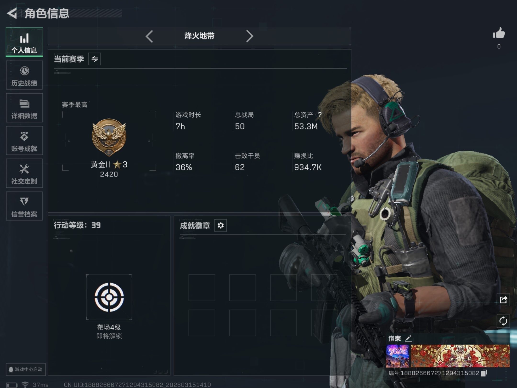 [17639736]【特价出售/店主推荐】53m总资产-40146k哈伏币-39烽火等级-黄金-1战场等级-无军衔