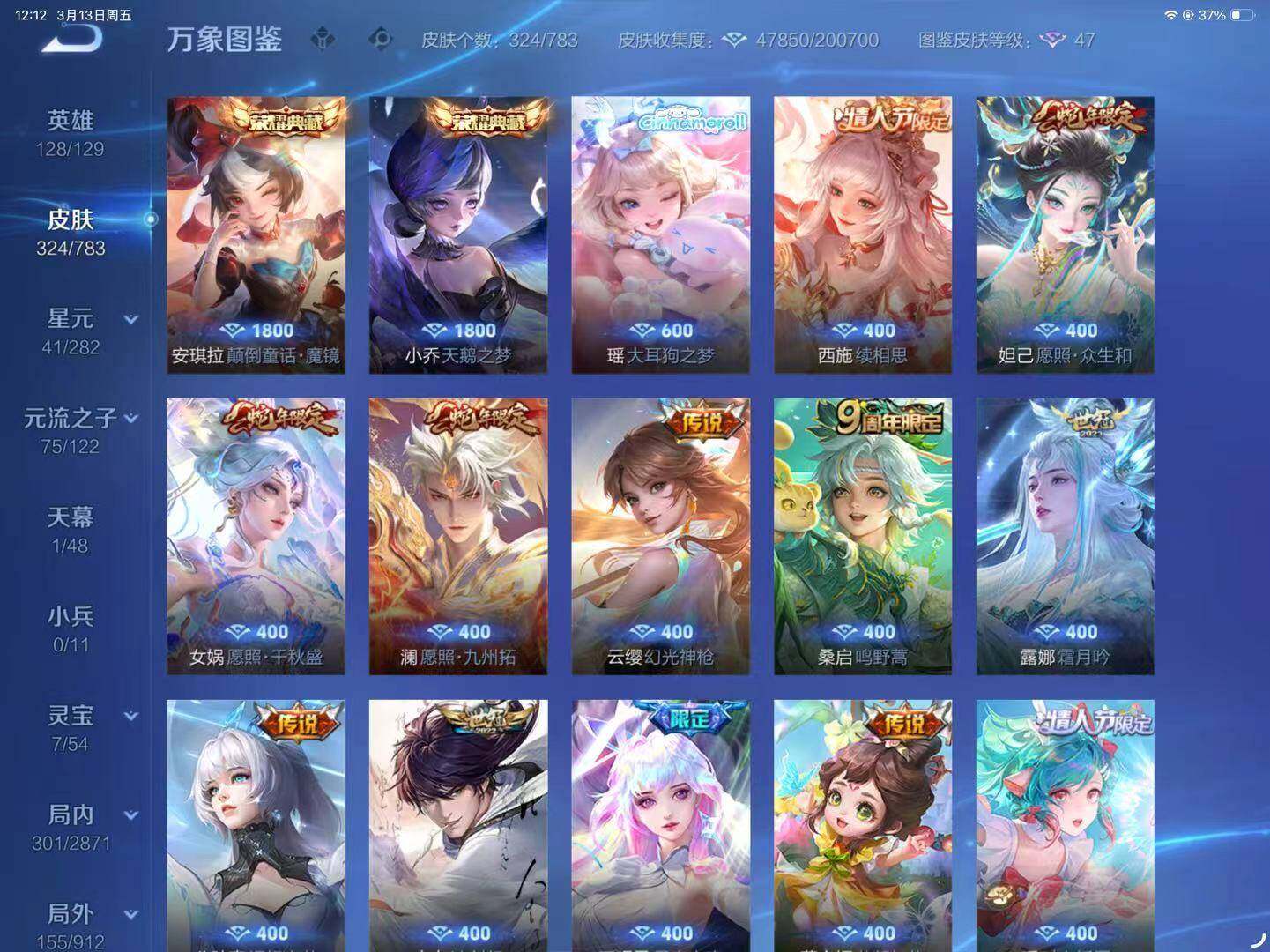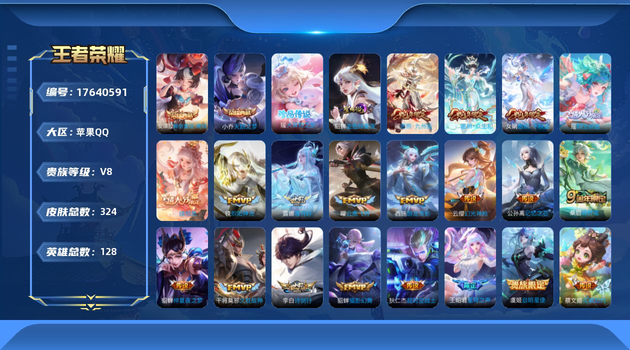 [17640591]苹果Q-324皮肤-2典藏皮肤-1珍品传说-20传说-91史诗