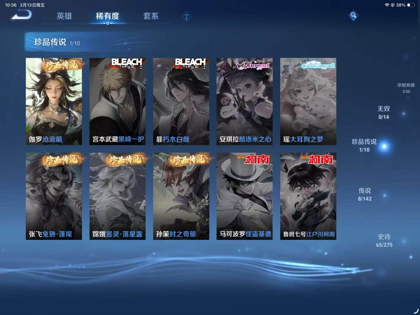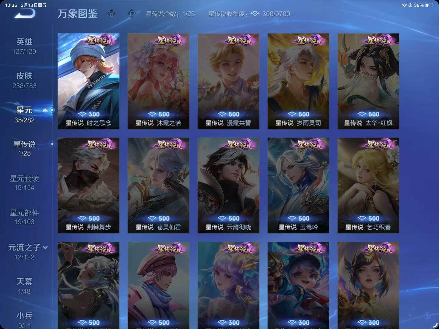 狂铁御狮,米莱狄御霄,牛魔御旌,盾山御銮,夏侯惇朔风刀,明世隐疑决卦,老夫子醍醐杖,鬼谷子原初探秘者,狄仁杰万华元夜,程咬金演武夺筹,钟馗驱傩正仪,苏烈千军破阵,吕布猎兽之王,嬴政白昼王子,沈梦溪星空之诺,李元芳银河之约,马可波罗暗影游猎,弈星混沌棋,达摩沙漠行僧,兰陵王金庭之子,沈梦溪大漠名商,李元芳云中旅人,桑启海盐诗旅,裴擒虎擒涛扼浪,鲁班大师探海日志