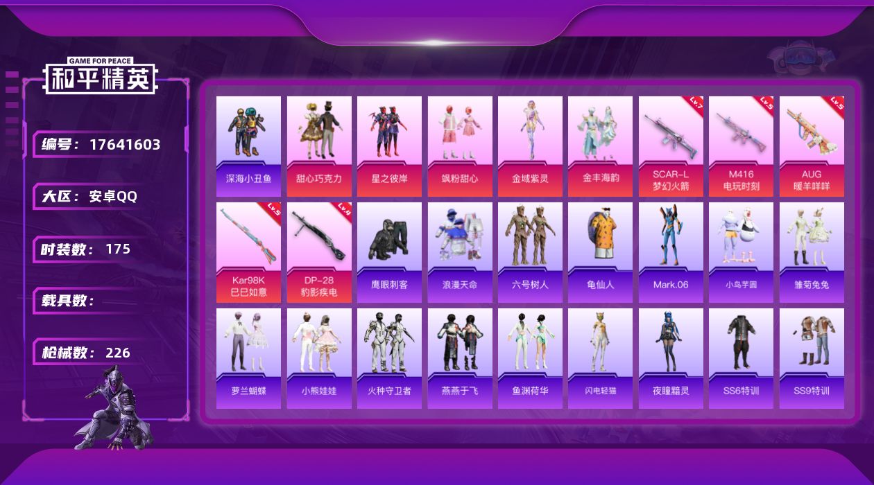 [17641603]可二次【特价出售/店主推荐】安卓 手Q-5粉装-5特效枪-0载具-2粉色飞行器-72326热力值-2王牌印记-175套装-226枪皮