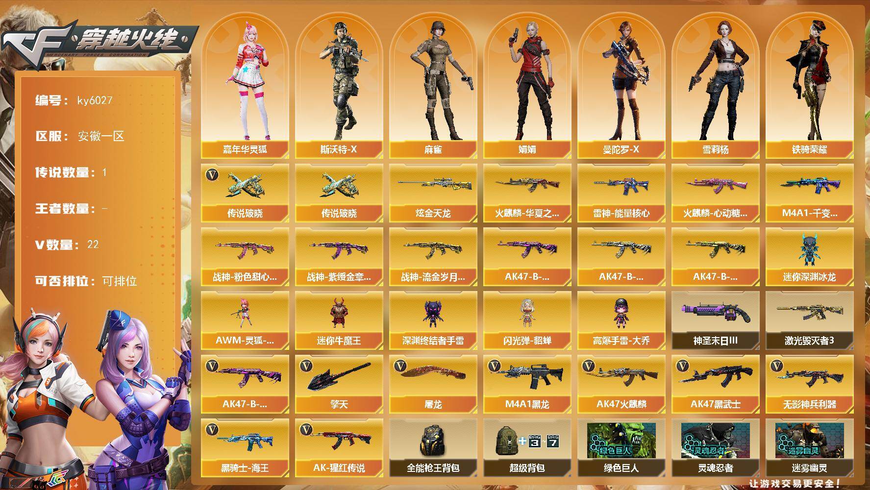 [17644196]【ky6027】安徽一区-23V-0王者武器数-1炫金武器数