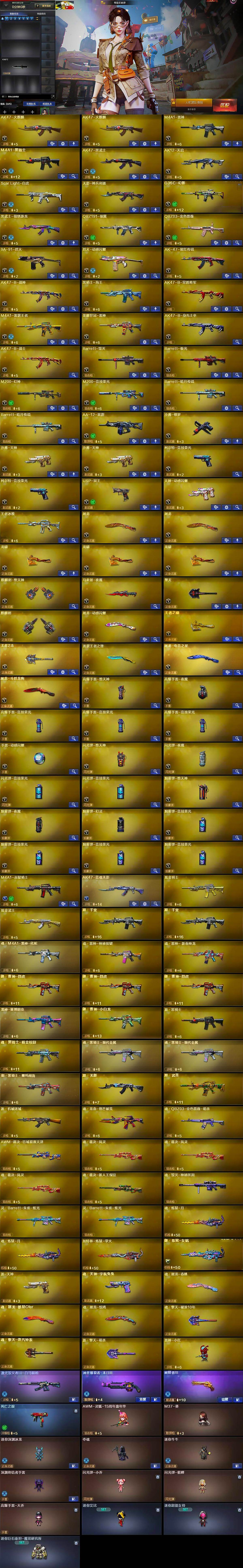 【英雄级武器】:AK47-火麒麟*2,M4A1-雷神,M4A1-黑骑士,AK47-黑武士,AK12-天启,Scar Light-白虎,无影-神兵利器,G36C-幻影,黑武士-锦绣游龙,QBZ191-银翼,QBZ03-金色蔷薇,9A91-烈火,烈火-动感闪耀,AK-47-猩红传说,AK47-B-战神,黑骑士-海王,AK47-B-常胜将军,M4A1-雷霆王者-觉醒版,荣耀世冠-雷神,AK47-B-身先士卒,AK47-B-战士,Barrett-毁灭,Barrett-极光,M200-幻神,