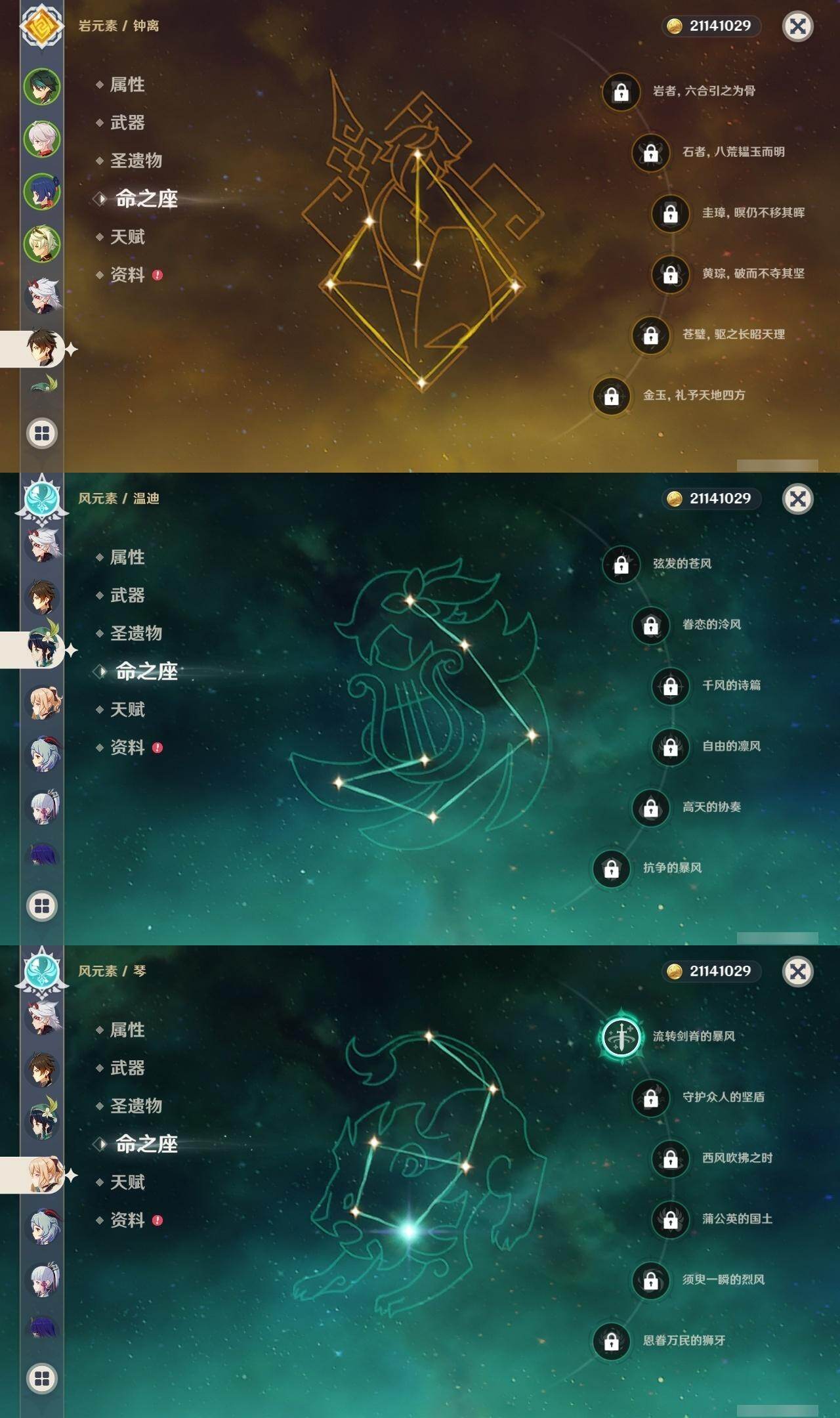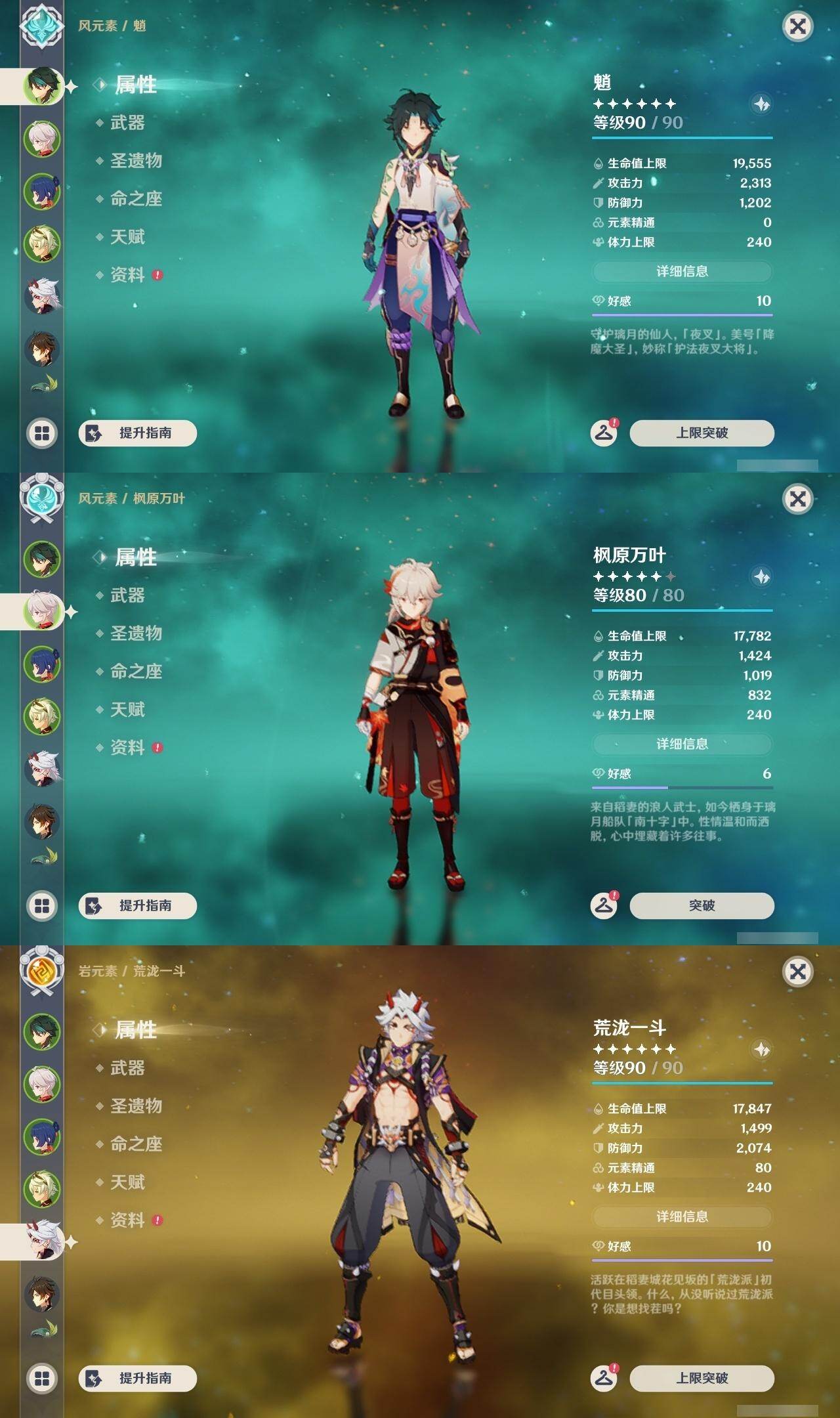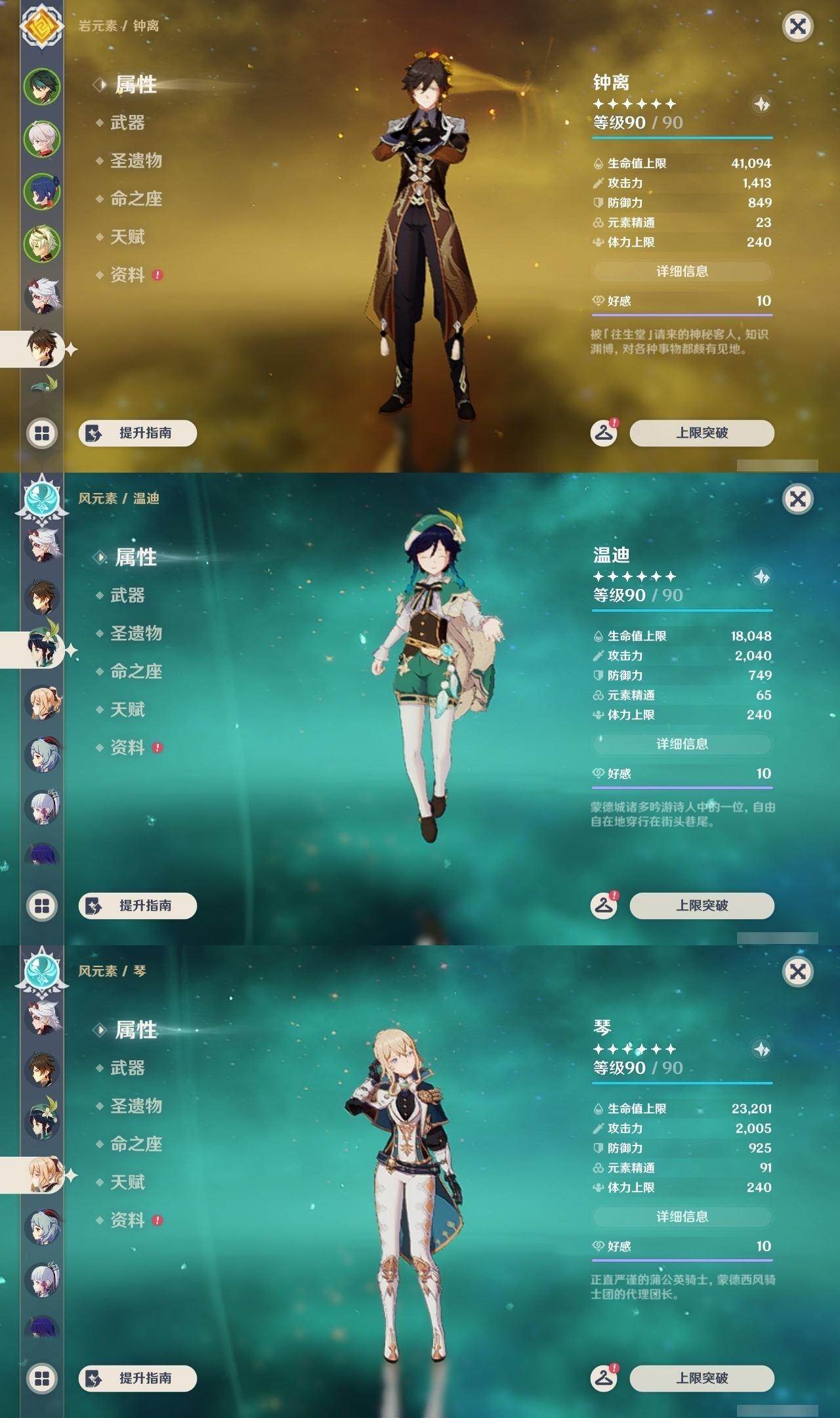 魈,枫原万叶,荒泷一斗,钟离,温迪,琴,甘雨,神里凌华,雷电将军,刻晴,胡桃,可莉,迪卢克,七七,莫娜