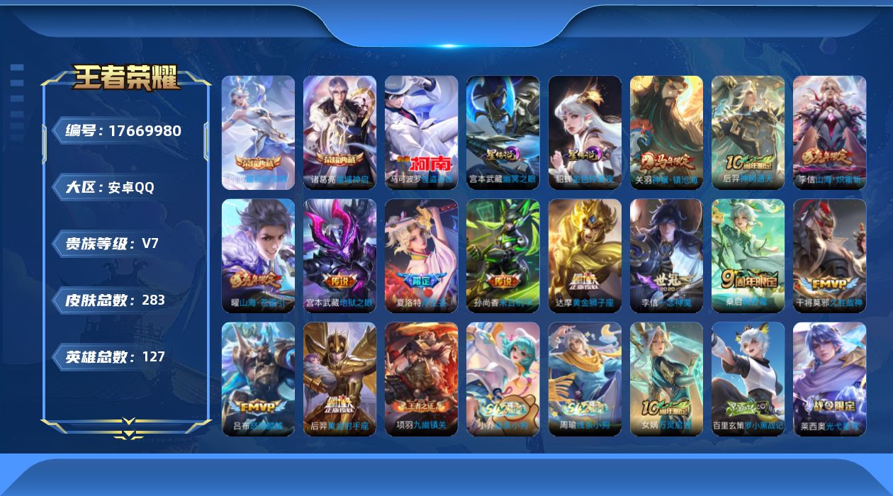 [17669980]安卓Q-283皮肤-2典藏皮肤-1珍品传说-13传说-85史诗
