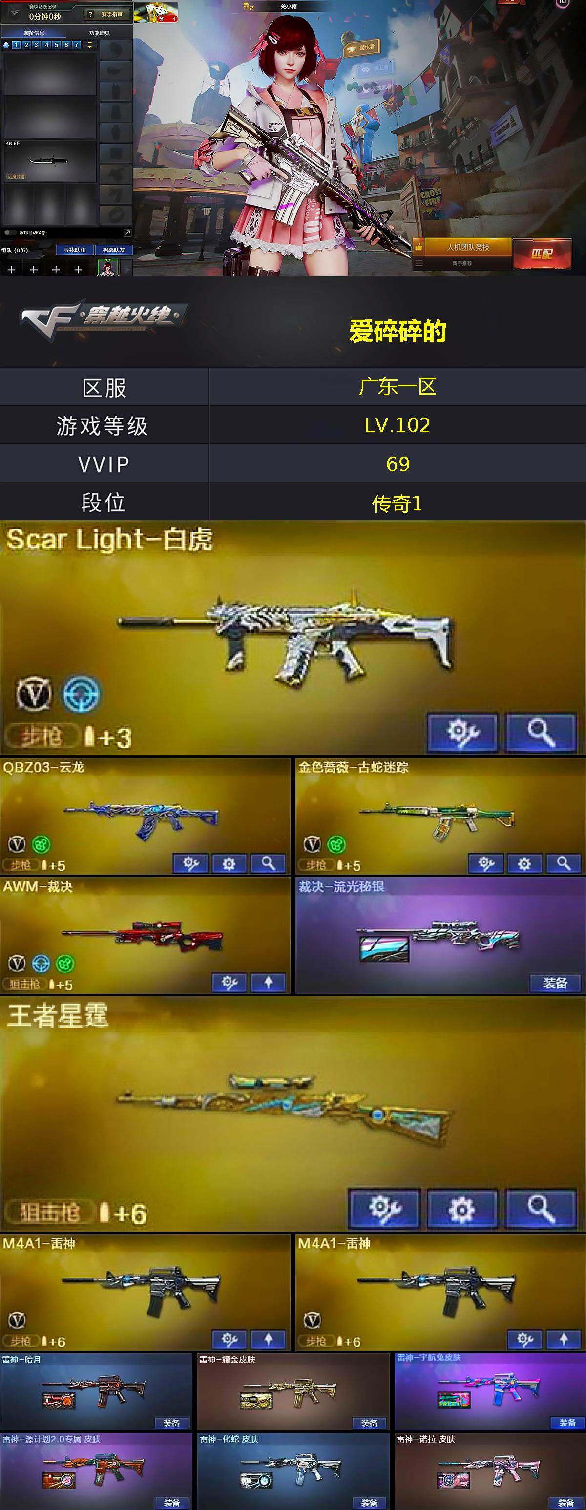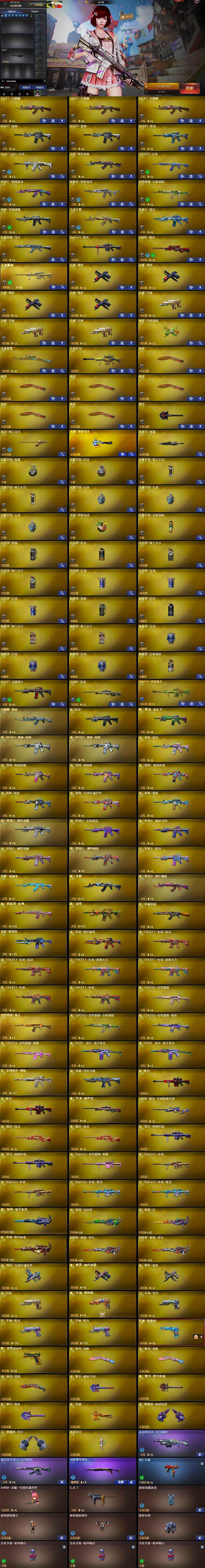 【热门武器】:Scar Light-白虎,M4A1-青龙,金色蔷薇-古蛇迷踪,修罗-古蛇迷踪,死亡之眼,C.A.T,沙鹰-修罗*4