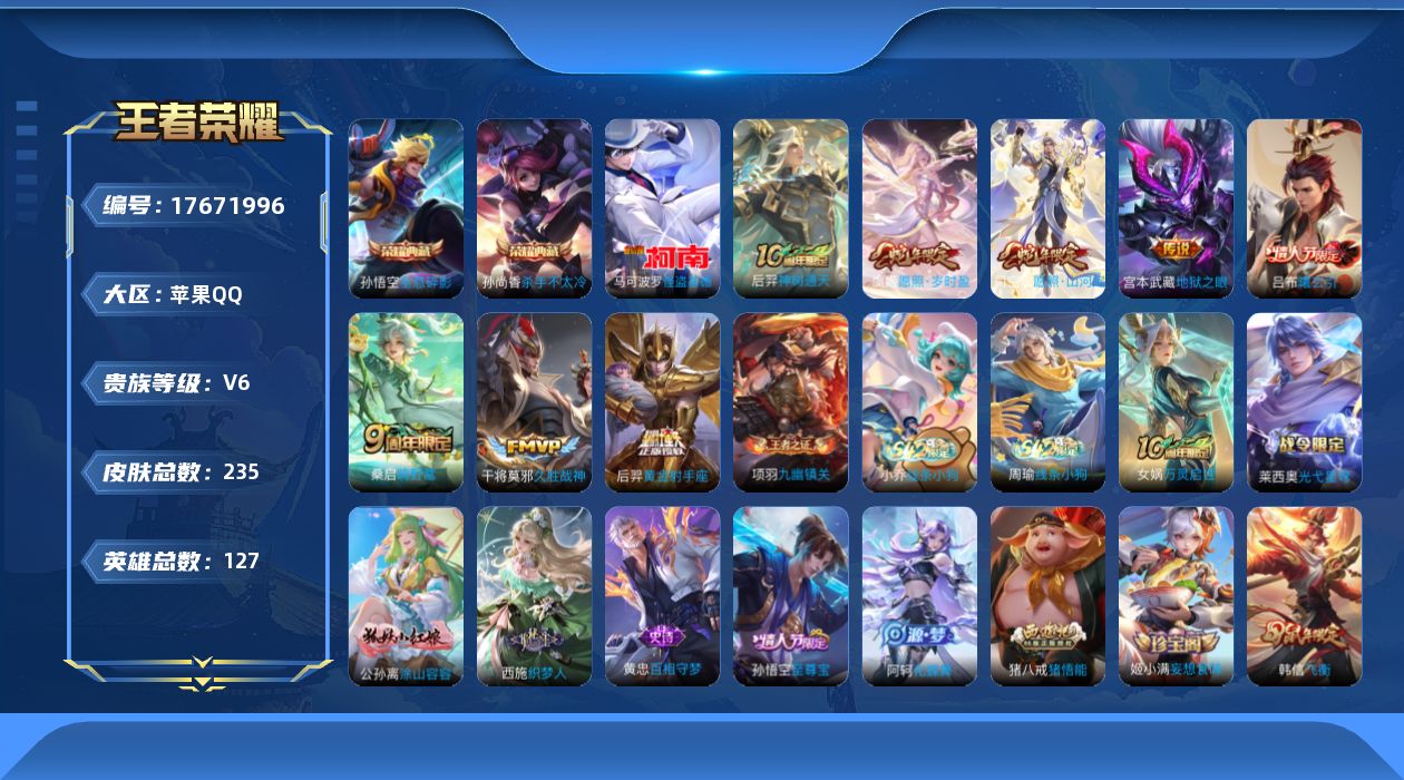 [17671996]苹果Q-235皮肤-2典藏皮肤-1珍品传说-8传说-69史诗