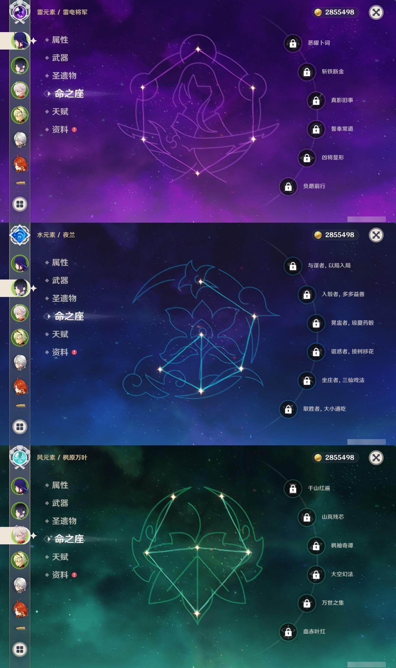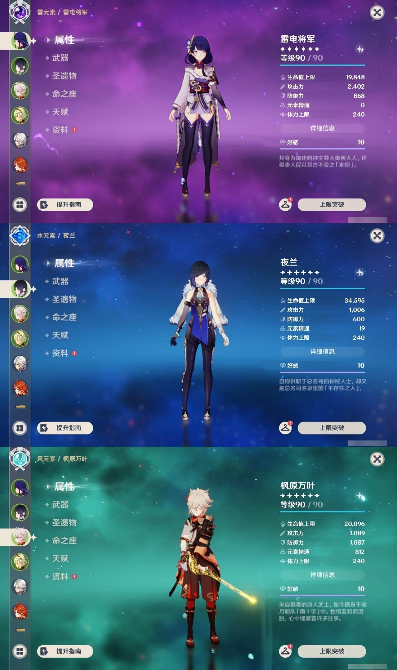 雷电将军,枫原万叶,刻晴,迪卢克,莫娜