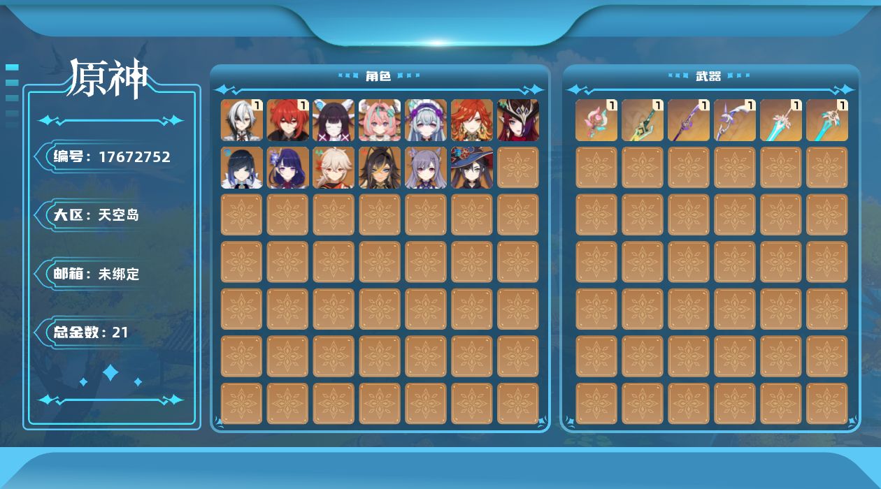 [17672752]56级/21黄/男主/13个五星角色/6个五星武器