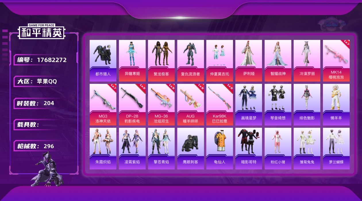 [17682272]【特价出售/店主推荐】/绝世印记6 苹果 手Q-7粉装-8特效枪-2粉色飞行器-87513热力值-18王牌印记-204套装-296枪皮【热门品类】:粉装-繁龙极客,套装-都市猎人,套装-龟仙人,套装-暗影哥特,套装-粉红小猪【粉色套装】:角色-复仇流浪者,粉装-仲夏莫吉托,粉装-繁龙极客,角色-萨利娅,角色-智耀战神,角色-冷漠罗丽,角色-异瞳寒姬【粉色枪皮等级】:AUG-暖羊咩咩(五级),UMP45-萌骑冒险(五级),Kar98K-巳巳如意(五级),Mk14-樱桃泡泡(七级),Mk14-福马献瑞(五级),DP-28-豹影疾电(五级),MG3-洛神天依(七级),MG-36-沧焰双生(五级)【粉色枪皮】:AUG-暖羊咩咩,UMP45-萌骑冒险,Kar98K-巳巳如意,Mk14-樱桃泡泡,Mk14-福马献瑞,DP-28-豹影疾电,MG3-洛神天依,MG-36-沧焰双生【粉色飞行器】:炫彩糖果飞行器,极意拳锋飞行器