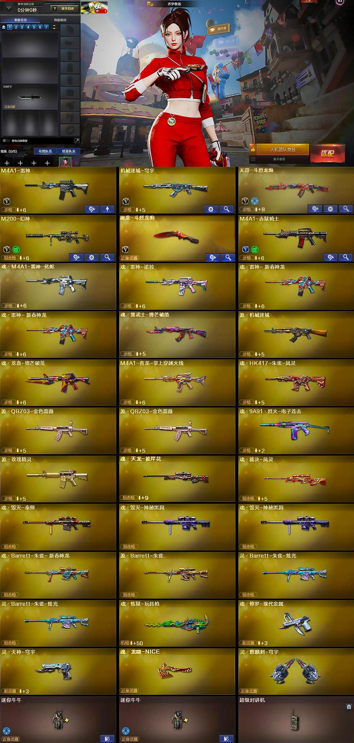【源级武器】:魂·M4A1-雷神-化蛇,魂·雷神-诺拉,魂·雷神-新春神龙*2,魂·黑武士-锋芒破茧,源·机械迷城,魂·龙血-锋芒破茧,M4A1-青龙-掌上穿越火线,魂·HK417-朱雀-凤灵,源-金色蔷薇*2,魂·9A91·烈火-电子连击,源·玫瑰精灵,魂·天龙-彼岸花,魂·裁决-凤灵,魂·裁决-羽掣,源·毁灭,魂·毁灭-秦师,魂·毁灭-神秘黑洞*2,魂·Barrett-朱雀- 新春神龙,源·Barrett-朱雀,灵·Barrett-朱雀-炫光*2,魂·炼狱-玩具枪,魂·修罗-现代金属,灵·天神-穹宇,魂·龙啸-NICE,魂·龙啸-秦师,灵·麒麟刺-穹宇