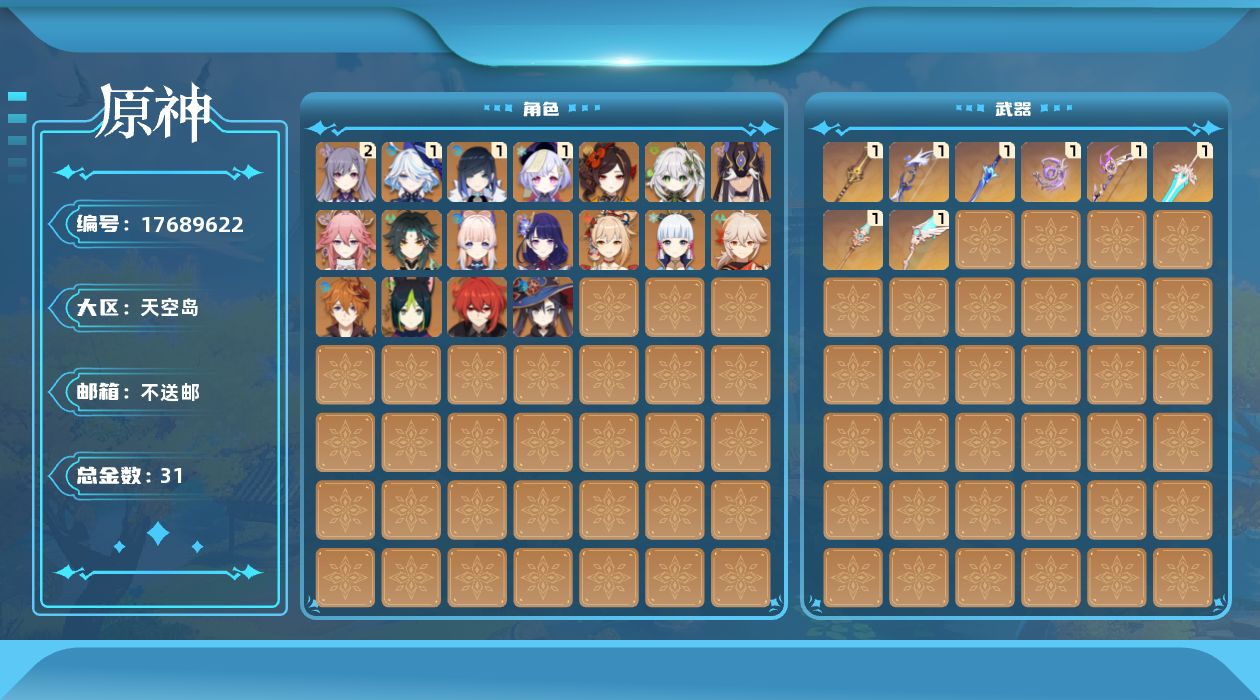 [17689622]58级/31黄/男主/18个五星角色/8个五星武器