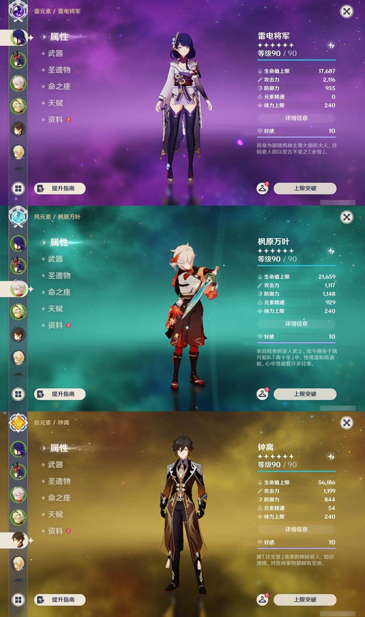 雷电将军,枫原万叶,钟离,魈,优菈,甘雨,七七,神里凌华,刻晴,莫娜,胡桃,迪卢克,琴