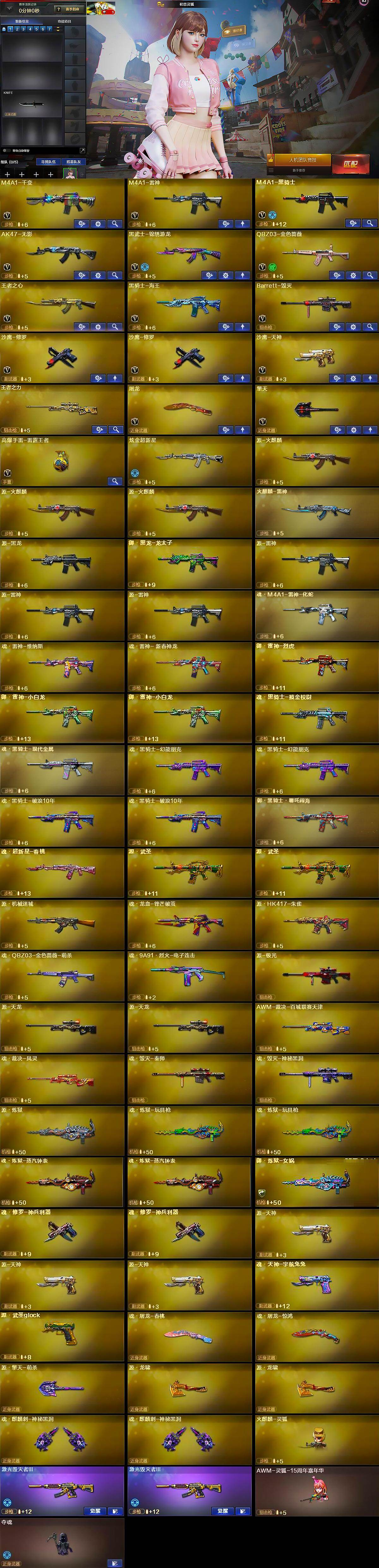 【源级武器】:源·火麒麟*3,御·火麒麟-平天大圣,火麒麟-雷神,源-黑龙,御·黑龙-龙太子,源·雷神*3,魂·M4A1-雷神-化蛇,魂·雷神-维纳斯,魂·雷神-新春神龙,御·雷神-机甲刑天,御·雷神-烈虎,御·雷神-葫芦兄弟,御·雷神-小白龙*2,魂·黑骑士-摸金校尉,魂·黑骑士-现代金属,魂·黑骑士-幻能朋克*2,魂·黑骑士-破浪10年*2,御·黑骑士-冰魄,御·黑骑士·哪吒闹海,魂·超新星-春桃,源·武圣*2,源·机械迷城,魂·龙血-锋芒破茧,源·青龙,源·HK417-朱雀,魂·QBZ03-金色蔷薇-萌杀,魂·9A91·烈火-电子连击,源-极光,源·天龙*2,AWM-裁决-百城联赛天津,魂·裁决-凤灵,源·毁灭,魂·毁灭-秦师,魂·毁灭-青帝,魂·毁灭-神秘黑洞,御·毁灭-黑大圣*2,源·炼狱,魂·炼狱-玩具枪*2,魂·炼狱-蒸汽钟表*2,御·炼狱-女娲,魂·修罗-神兵利器*2,源·天神*3,魂·天神-宇航兔兔,源·武圣glock,魂·屠龙-春桃,魂·屠龙-惊鸿,源·擎天-萌杀,源·龙啸*2,魂·麒麟刺-神秘黑洞*2