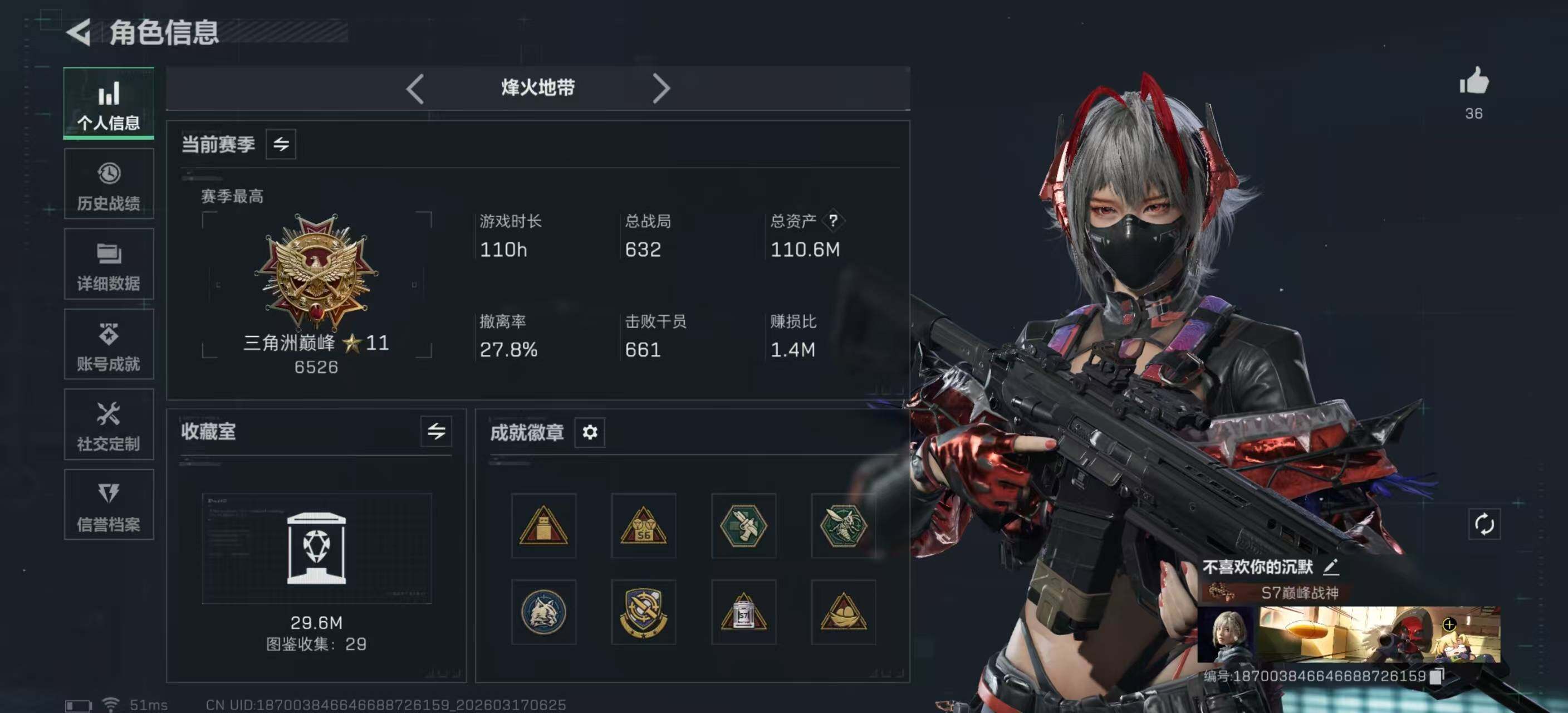 [17712522]111m总资产-2444k哈伏币-60烽火等级-三角洲巅峰-50战场等级-上等兵