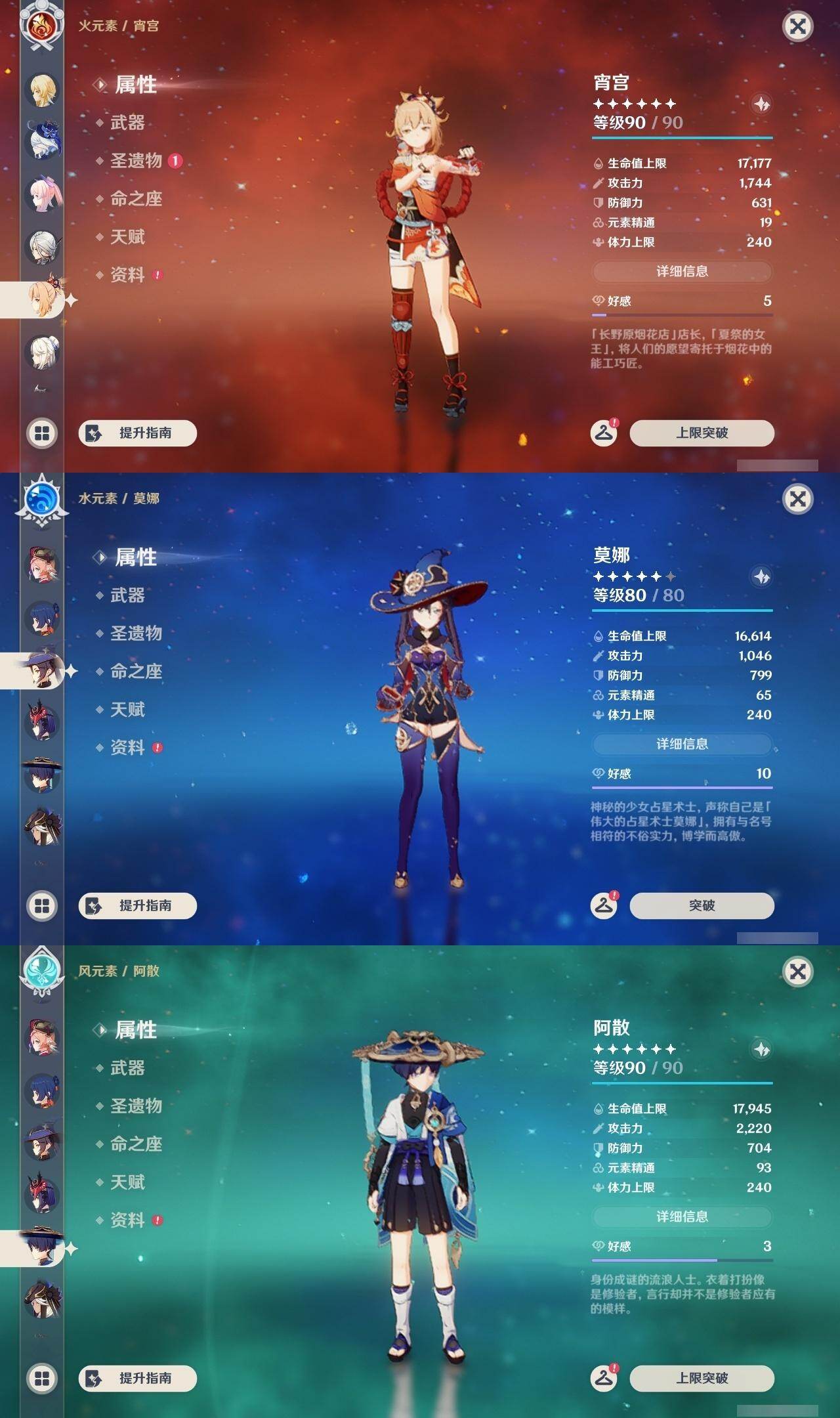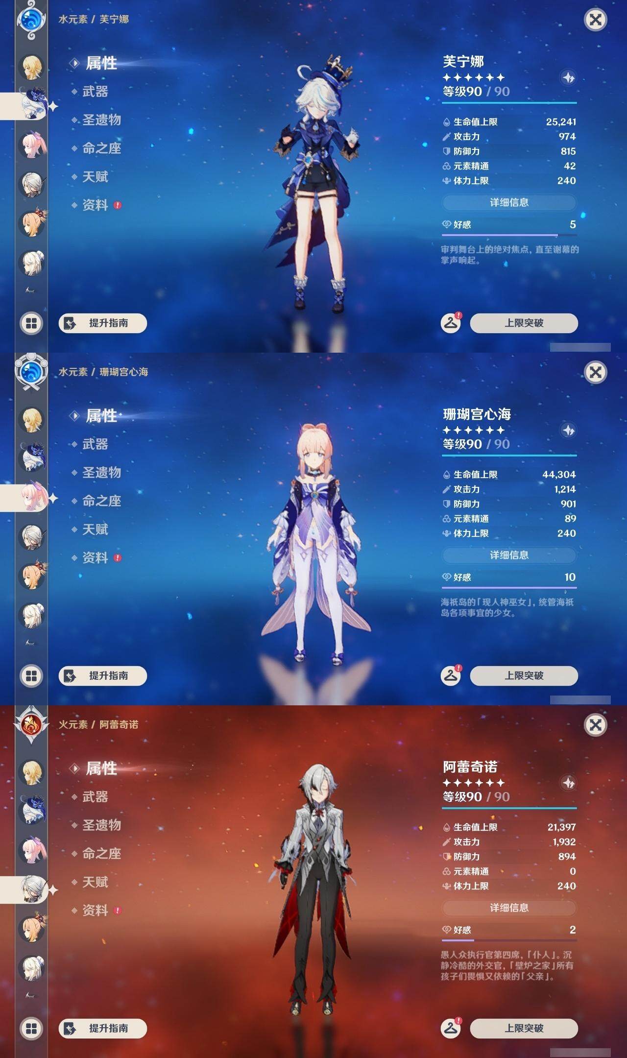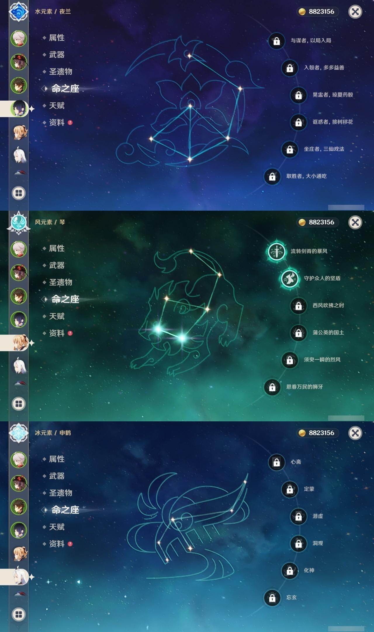 0命阿蕾奇诺,0命芙宁娜,0命白术,0命迪希雅,0命流浪者,0命赛诺,0命提纳里,0命夜兰,0命八重神子,0命申鹤,0命枫原万叶,0命钟离,0命胡桃,0命甘雨,0命宵宫,0命达达利亚,0命珊瑚宫心海,1命刻晴,2命七七,2命琴,2命莫娜,1命迪卢克,0命玛拉妮,精1雾切之回光,精1护摩之杖,精1四风原典,精1天空之卷,精1风鹰剑,精1狼的末路