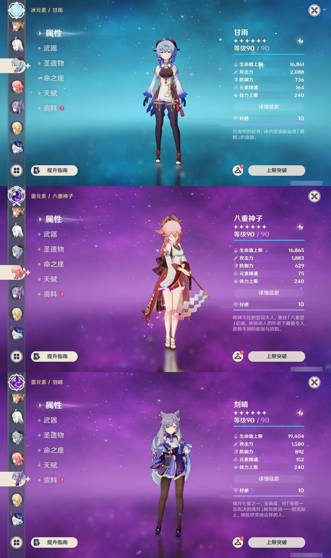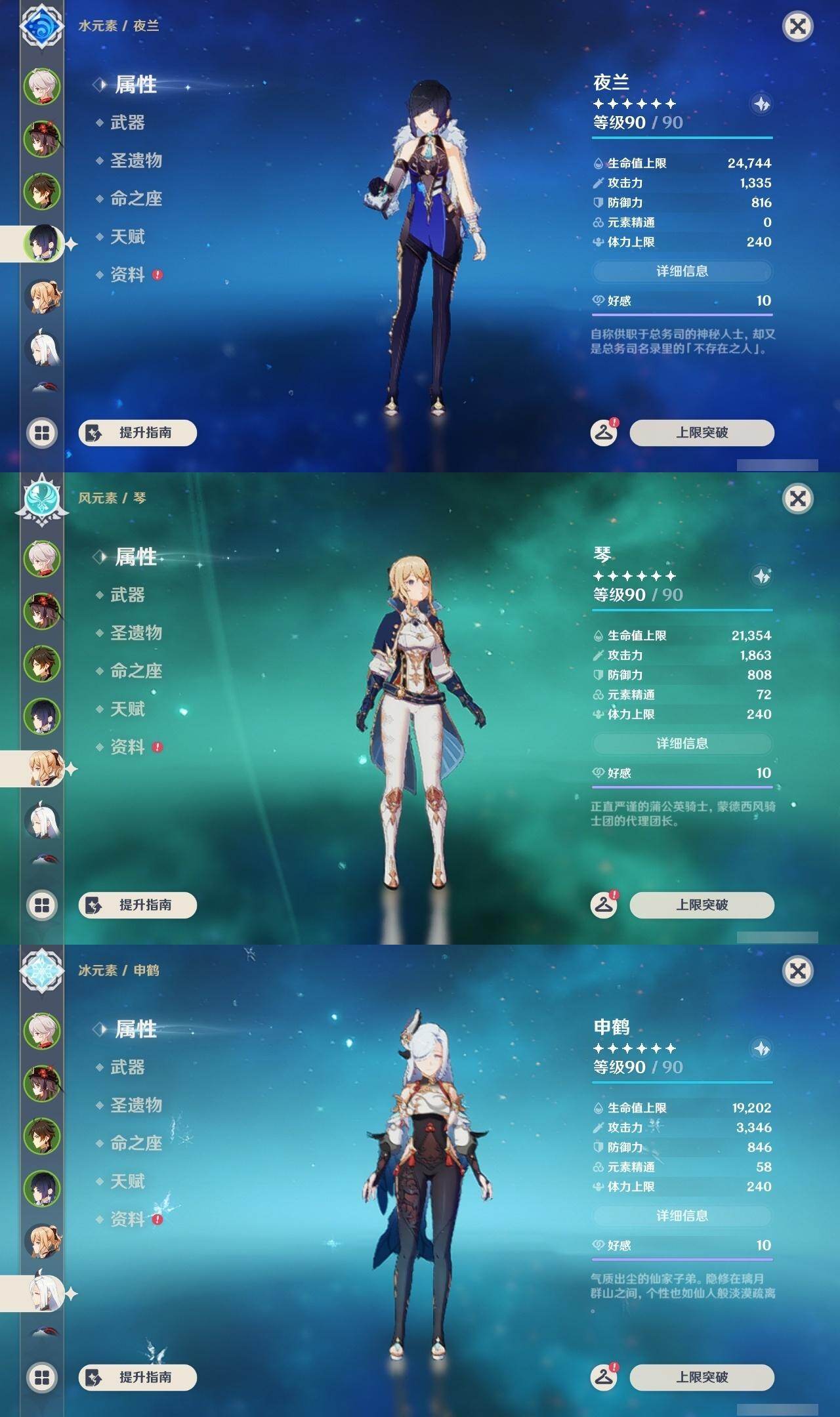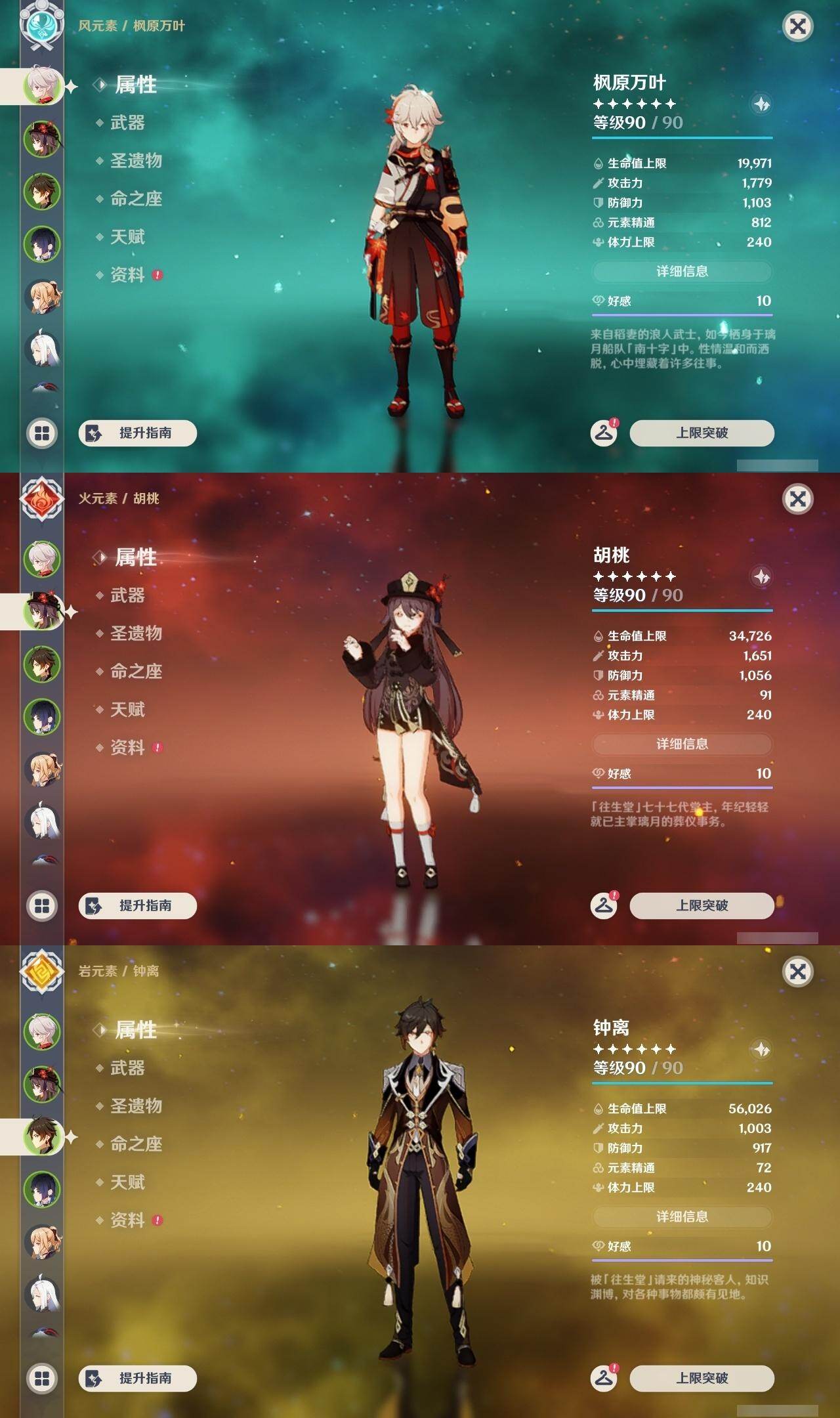 枫原万叶,胡桃,钟离,琴,申鹤,甘雨,八重神子,刻晴,珊瑚宫心海,宵宫,莫娜,达达利亚,迪卢克,七七