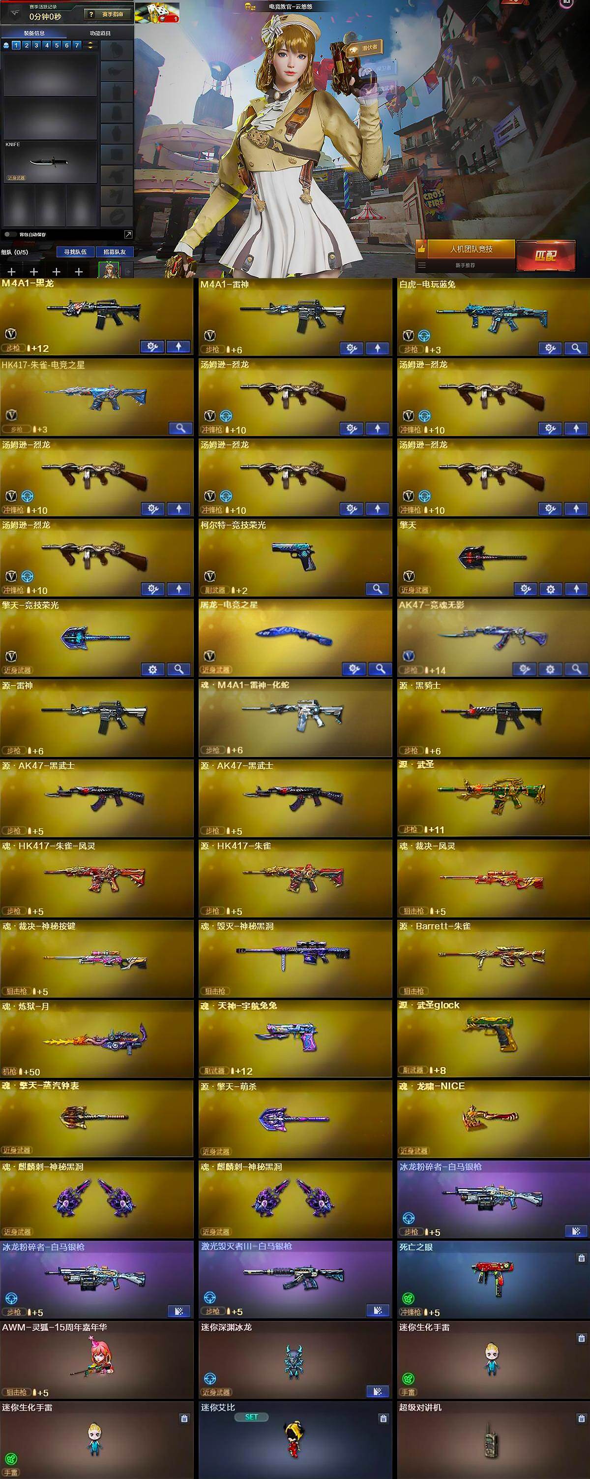 【英雄级武器】:M4A1-黑龙,M4A1-雷神,白虎-电玩蓝兔,HK417-朱雀-电竞之星,汤姆逊-烈龙*6,柯尔特-竞技荣光,擎天,擎天-竞技荣光,屠龙-电竞之星,AK47-竞魂无影