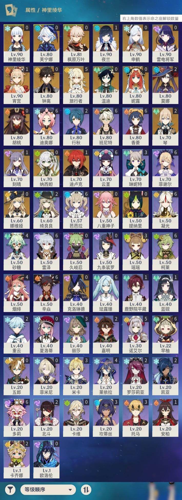 [17690706]58级/34黄/女主/20个五星角色/6个五星武器