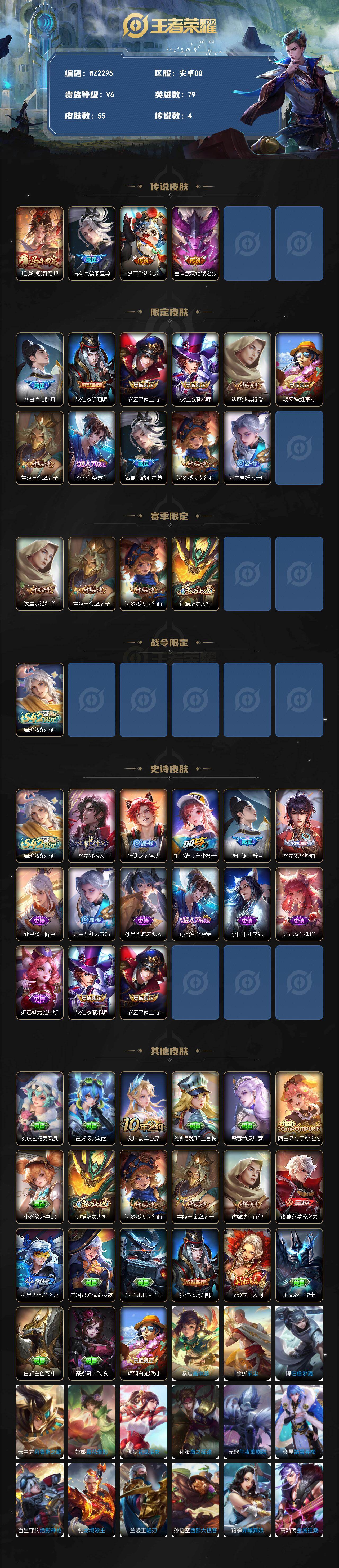 - [15614064]社交限制介意勿拍!苹果WX-V10-至尊星耀V段位-128英雄-356皮肤-13典藏皮肤-1典藏英雄-1无双-42传说-108史诗-4星传说(未来机甲,星际治安官,金色仲夏夜,黛羽霜翎) 【英雄全皮】:孙权全皮,李信全皮,夏洛特全皮,影全皮 【荣耀典藏】:武则天英雄,孙悟空全息碎影,武则天倪克斯神谕,夏侯惇无限飓风号,小乔天鹅之梦,孙尚香杀手不太冷,鲁班七号星空梦想,芈月大秦宣太后,程咬金活力突击,李白鸣剑曳影,诸葛亮星域神启,花木兰九霄神辉,铠银白咏叹调,貂蝉幻阙歌 【无双皮肤】:妲己青丘九尾 【传说皮肤】:后羿神树通天,桑启鸣野蒿,吕布曦玄引,艾琳觅芳踪,澜电玩雷克斯,张飞百相守梦,夏洛特浮生妄,虞姬无限倾心,项羽无限倾心,孙悟空齐天大圣,小乔山海琳琅生,曜山海苍雷引,李信山海炽霜斩,吕布怒海麟威,孙尚香音你闪耀,马可波罗深海之息,露娜启示之音,蔡文姬花朝如约,孙策末日机甲,孙尚香异界灵契,赵云淬星耀世,王昭君乞巧织情,西施游龙清影,周瑜音你心动,李元芳飞鸢探春,铠绛天战甲,镜炽阳神光,虞姬启明星使,李信一念神魔,刘备时之恋人,伽罗太华,貂蝉猫影幻舞,干将莫邪久胜战神,虞姬云霓雀翎,花木兰冠军飞将,梦奇胖达荣荣,后羿黄金射手座,貂蝉仲夏夜之梦,孙尚香末日机甲,宫本武藏地狱之眼,武则天海洋之心,狄仁杰超时空战士 【限定皮肤】:姜子牙天穹之誓,狄仁杰阴阳师,小乔山海琳琅生,赵云皇家上将,赵云龙胆,赵云百木心枪,墨子神迹守卫,妲己时之彼端,妲己时之奇旅,孙尚香蔷薇恋人,孙尚香异界灵契,鲁班七号乒乒小将,庄周高山流水,钟无艳超时空战士,扁鹊奇幻香踪,白起夜都怪侠,芈月幻夜卜梦,甄姬幽恒,甄姬女儿国国王,甄姬游园惊梦,甄姬落雪兰心,马可波罗暗影游猎,马可波罗深海之息,马可波罗山海玄木吟,狄仁杰魔术师,狄仁杰万华元夜,达摩沙漠行僧,项羽海滩派对,项羽无限倾心,老夫子航海奇遇记,关羽百相守梦,露娜启示之音,韩信飞衡,王昭君午后时光,兰陵王金庭之子,孙悟空至尊宝,孙悟空孙行者,孙悟空齐天大圣,后羿圣弓游侠,张飞百相守梦,李元芳云中旅人,虞姬启明星使,虞姬无限倾心,钟馗驱傩正仪,杨戬潮玩骑兵,干将莫邪真爱魔法,雅典娜单词大作战,鬼谷子原初探秘者,鬼谷子五谷丰年,大乔白鹤梁神女,黄忠烈魂,黄忠火炮绅士,铠青龙志,苏烈千军破阵,百里守约朱雀志,沈梦溪大漠名商,明世隐吟游魔法,裴擒虎