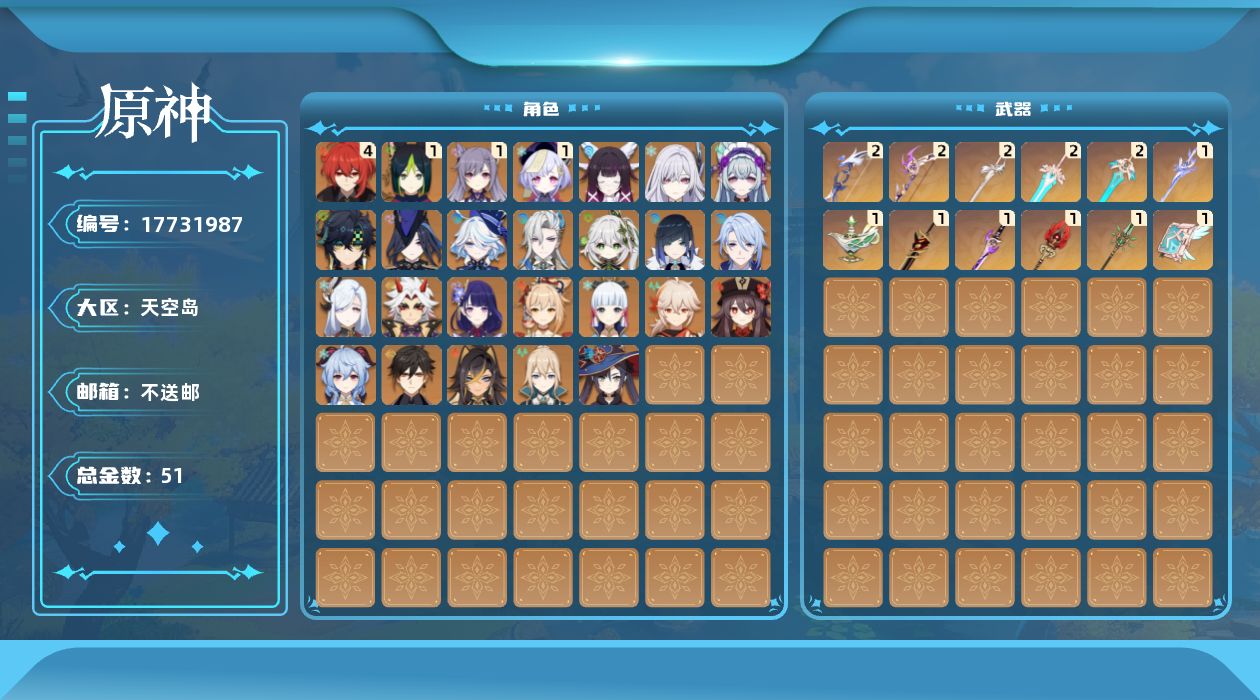[17731987]60级/51黄/男主/26个五星角色/13个五星武器