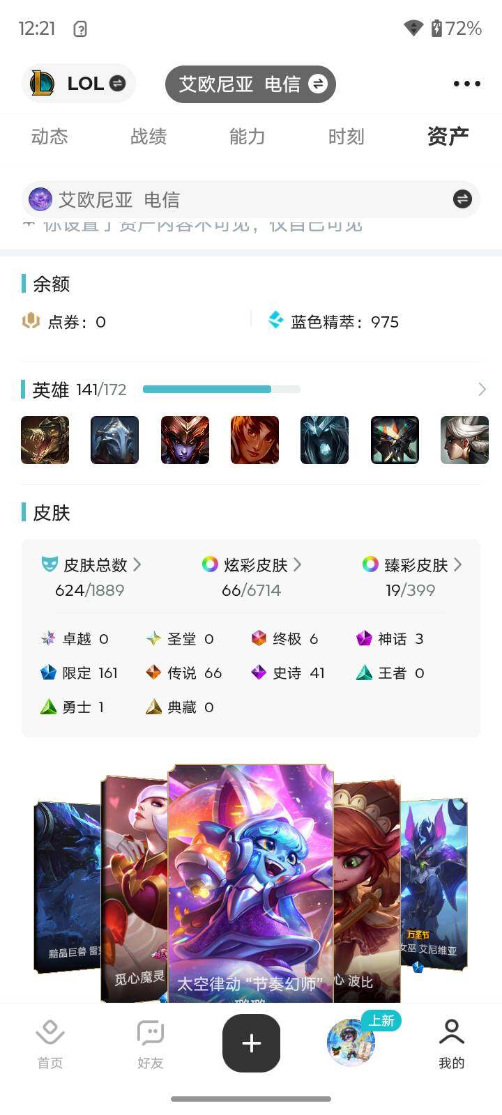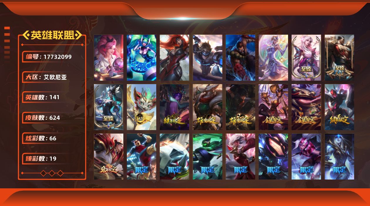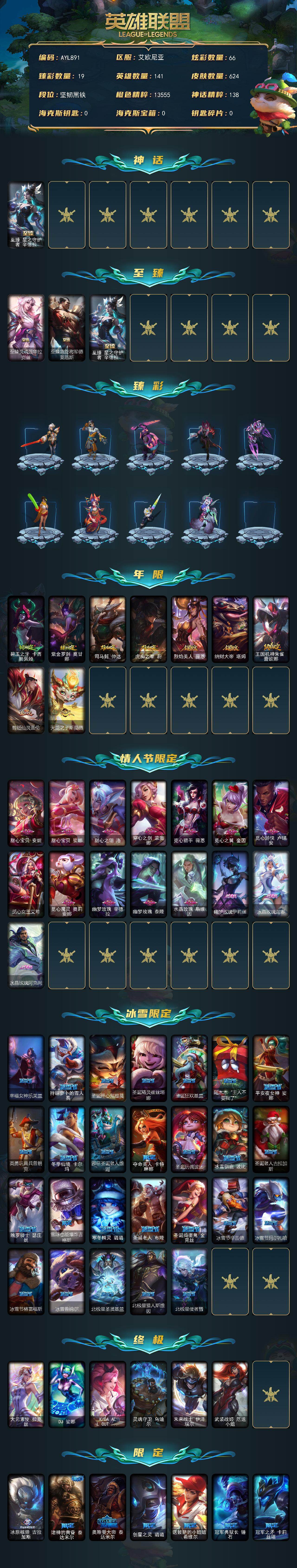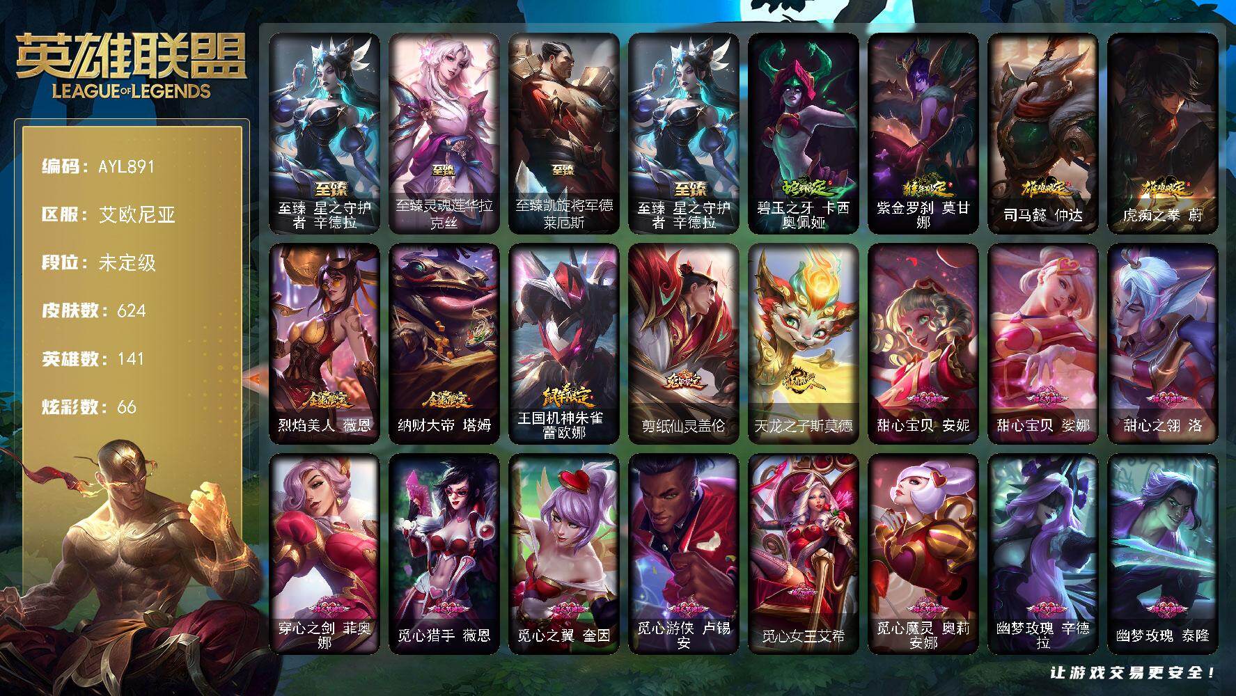 [17732099]【店主推荐捡漏号】未定级段位-141英雄-624皮肤-66炫彩-8终极-3神话-161限定-66传说-41史诗