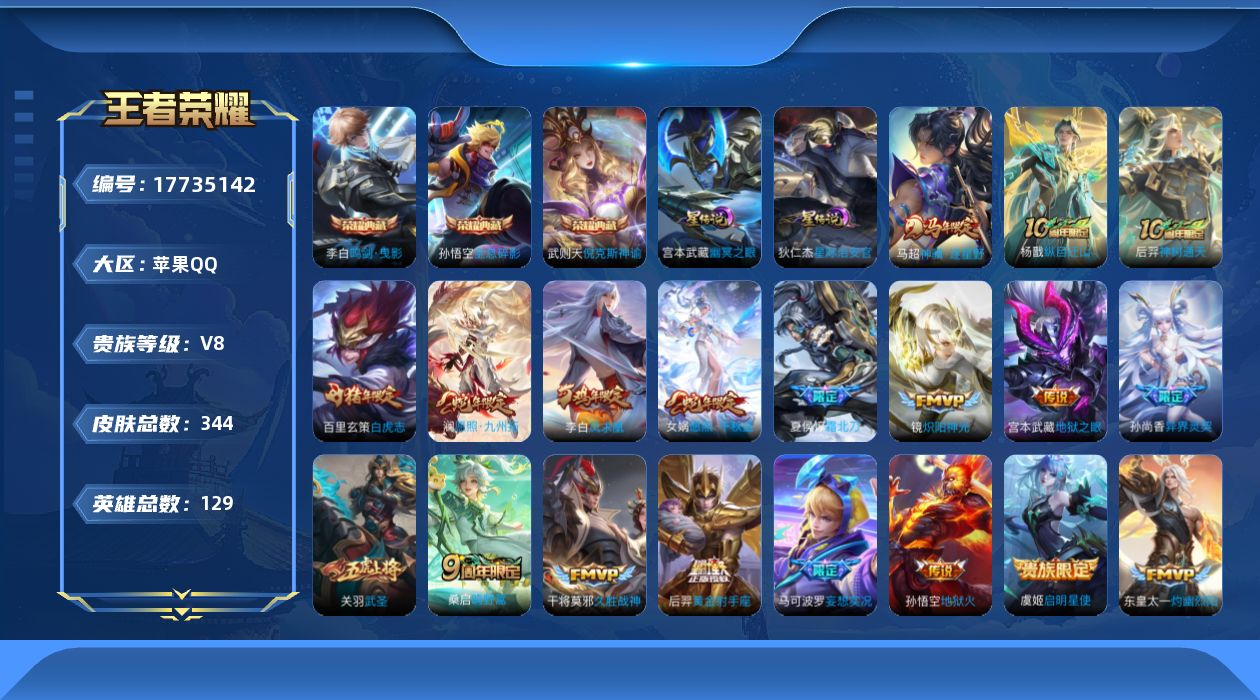 [17735142]苹果Q-V8-344皮肤-3典藏皮肤-1典藏英雄-19传说-93史诗