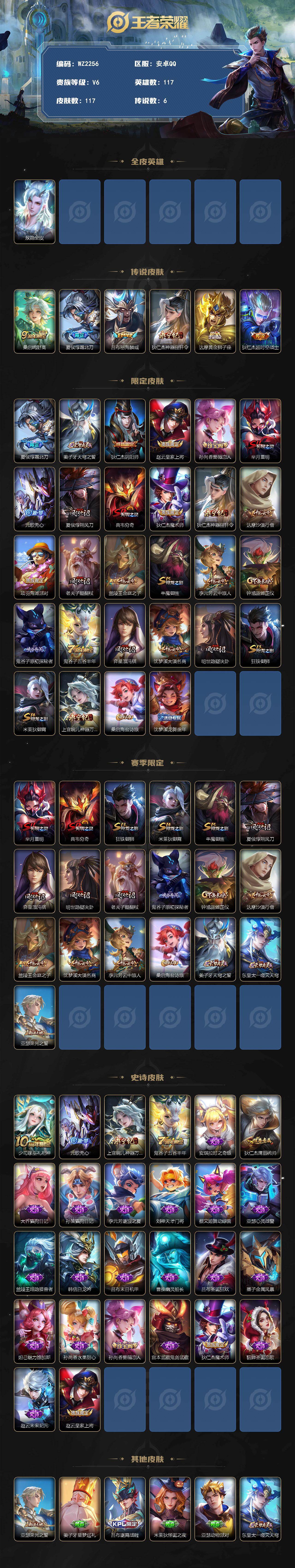 - [16507065]苹果Q-V3-永恒钻石IV段位-112英雄-85皮肤-4传说-19史诗 【传说皮肤】:澜愿照九州拓,云缨幻光神枪,桑启鸣野蒿,李信山海炽霜斩 【限定皮肤】:姜子牙天穹之誓,狄仁杰阴阳师,李元芳云中旅人,干将莫邪胡桃夹子,裴擒虎擒涛扼浪,李信山海炽霜斩,鲁班大师探海日志,桑启海盐诗旅,阿古朵江河有灵,张良古海寻踪,鬼谷子天穹祈灯,沈梦溪龙舞盛年,刘邦剑破天穹,程咬金群星魔术团,周瑜熔金海岸 【年限皮肤】:李信山海炽霜斩,澜愿照九州拓 【赛季限定】:李元芳云中旅人,桑启海盐诗旅,裴擒虎擒涛扼浪,鲁班大师探海日志,张良古海寻踪,鬼谷子天穹祈灯,刘邦剑破天穹,姜子牙天穹之誓,东皇太一噬灭天穹,太乙真人谧流熔炉,甄姬逆浪荇歌 【战令限定】:周瑜线条小狗 【史诗皮肤】:阿轲暗夜猫娘,甄姬冰雪圆舞曲,宫本武藏鬼剑武藏,孙尚香水果甜心,嬴政摇滚巨星,墨子金属风暴,刘禅绅士熊喵,曹操幽灵船长,刘邦德古拉伯爵,兰陵王暗隐猎兽者,李元芳逐浪之夏,阿轲节奏热浪,孙策猫狗日记,狄仁杰鹰眼统帅,刘禅电玩爆裂旋风,阿古朵江河有灵,马可波罗星界特工,赵怀真器灵浮梦炉,阿轲化蝶舞,周瑜线条小狗 【其他皮肤】:韩信教廷特使,韩信街头霸王,露娜哥特玫瑰,赵云忍炎影,白起白色死神,扁鹊化身博士,典韦黄金武士,达摩拳王,刘备万事如意,后羿阿尔法小队,狄仁杰阴阳师,刘备汉昭烈帝,钟无艳海滩丽影,老夫子功夫老勺,诸葛亮掌控之力,李白敏锐之力,吕布野性能量,杨戬次元傲视,鲁班大师乓乓大师,干将莫邪胡桃夹子,程咬金无双福将,蒙恬蔚蓝守将,李元芳云中旅人,桑启海盐诗旅,猪八戒潮玩探月行,白起乐园追猎者,裴擒虎擒涛扼浪,太乙真人劲辣红锅,鲁班大师探海日志,李元芳妄想特派,张良古海寻踪,钟无艳聚星闪耀,鬼谷子天穹祈灯,廉颇功夫炙烤,沈梦溪龙舞盛年,刘邦剑破天穹,程咬金群星魔术团,姜子牙天穹之誓,周瑜熔金海岸,盘古敬我三分,东皇太一噬灭天穹,干将莫邪雾都夜雨,吕布逐霄战戟,苍苍林狼骑,太乙真人谧流熔炉,西施雪境奇遇,阿古朵布丁狗之约,甄姬逆浪荇歌,项羽帝国元帅,孙悟空西部大镖客,虞姬加勒比小姐,马可波罗激情绿茵,杨戬埃及法老,百里守约绝影神枪,元歌午夜歌剧院,李信灼热之刃,曜归虚梦演,马超幸存者,镜冰刃幻境,澜孤猎,司空震启蛰 【内测皮肤】:干将莫邪胡桃夹子 【营地ID】:1771932462