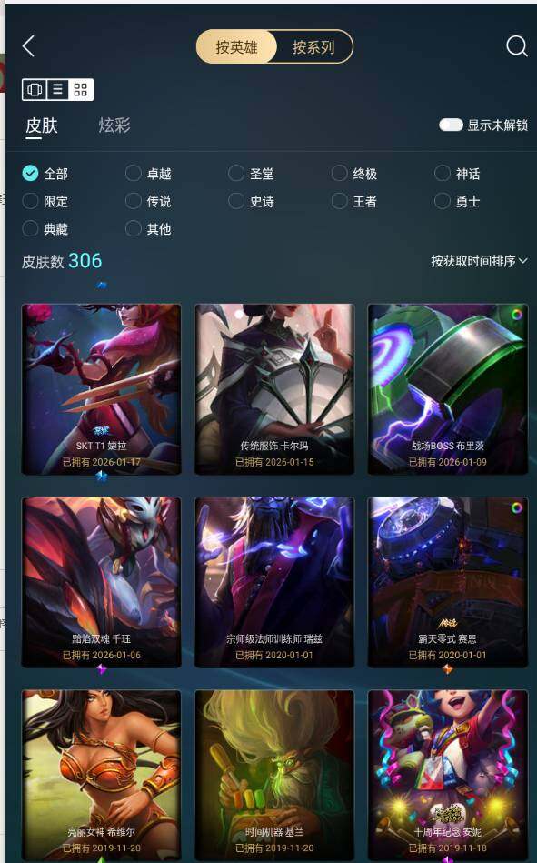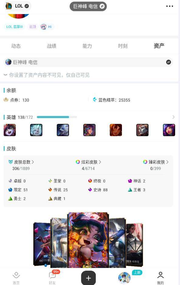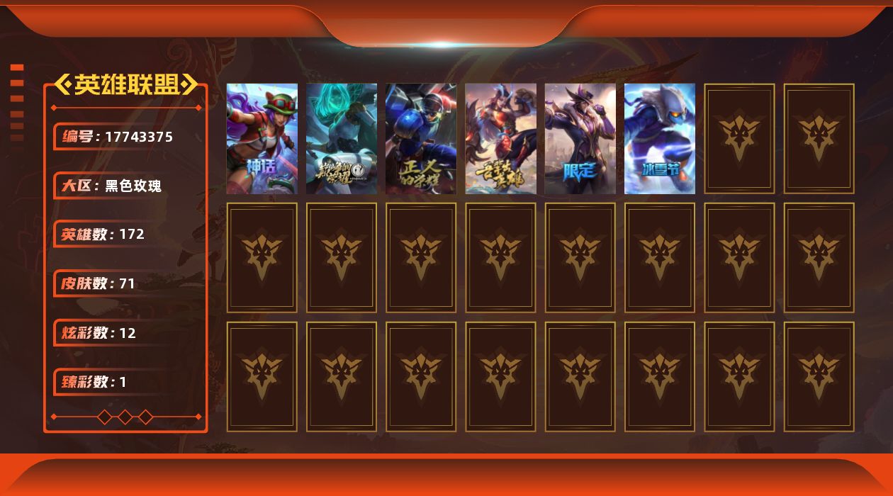 [17743375]未定级段位-138英雄-306皮肤-4炫彩-0终极-2神话-51限定-25传说-88史诗
