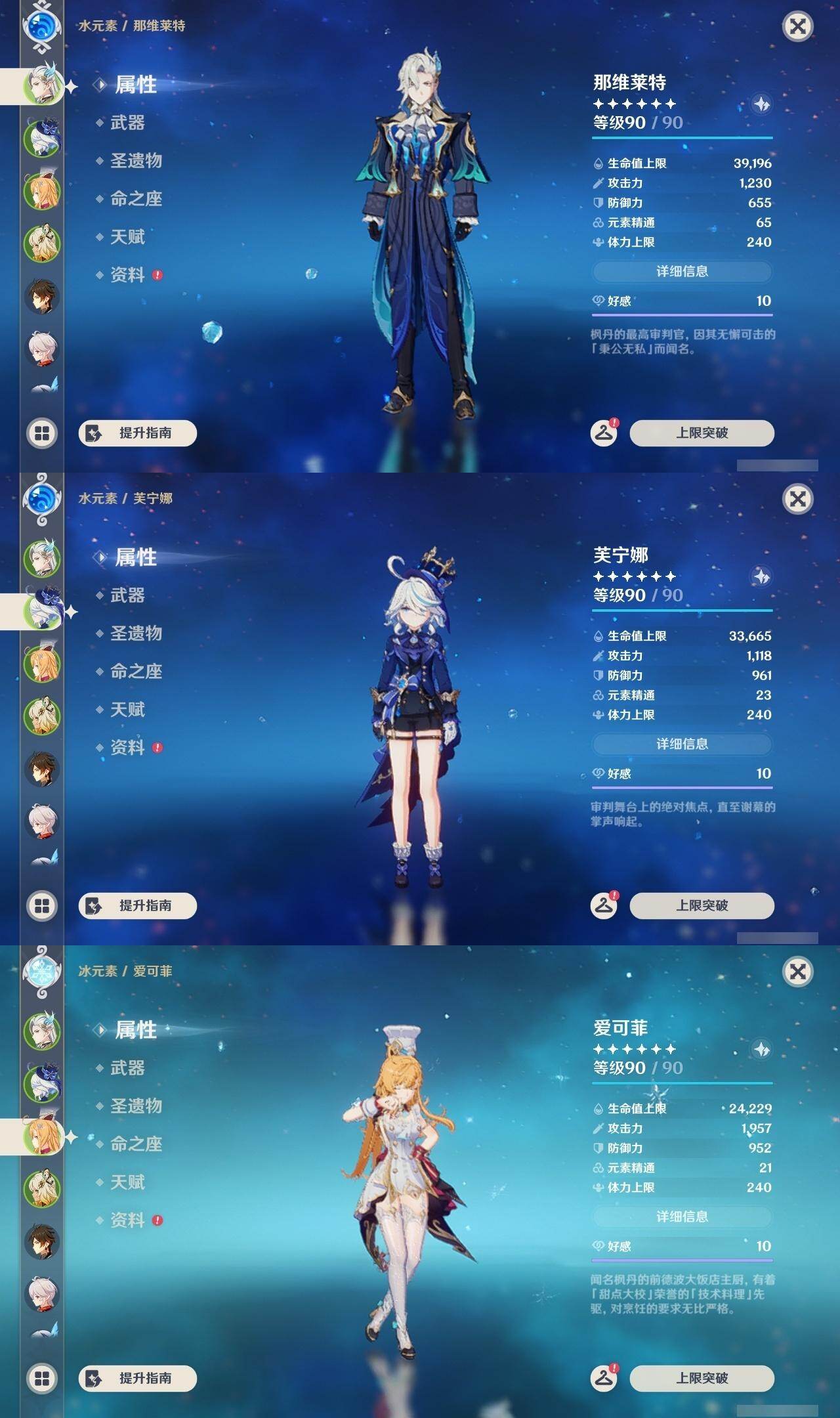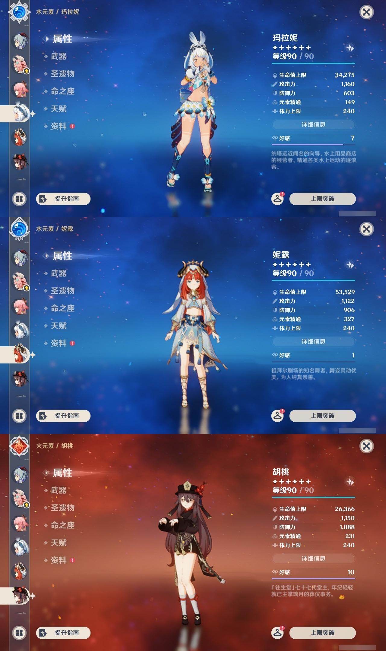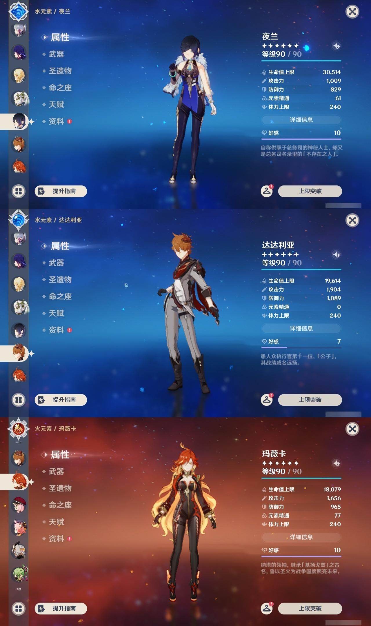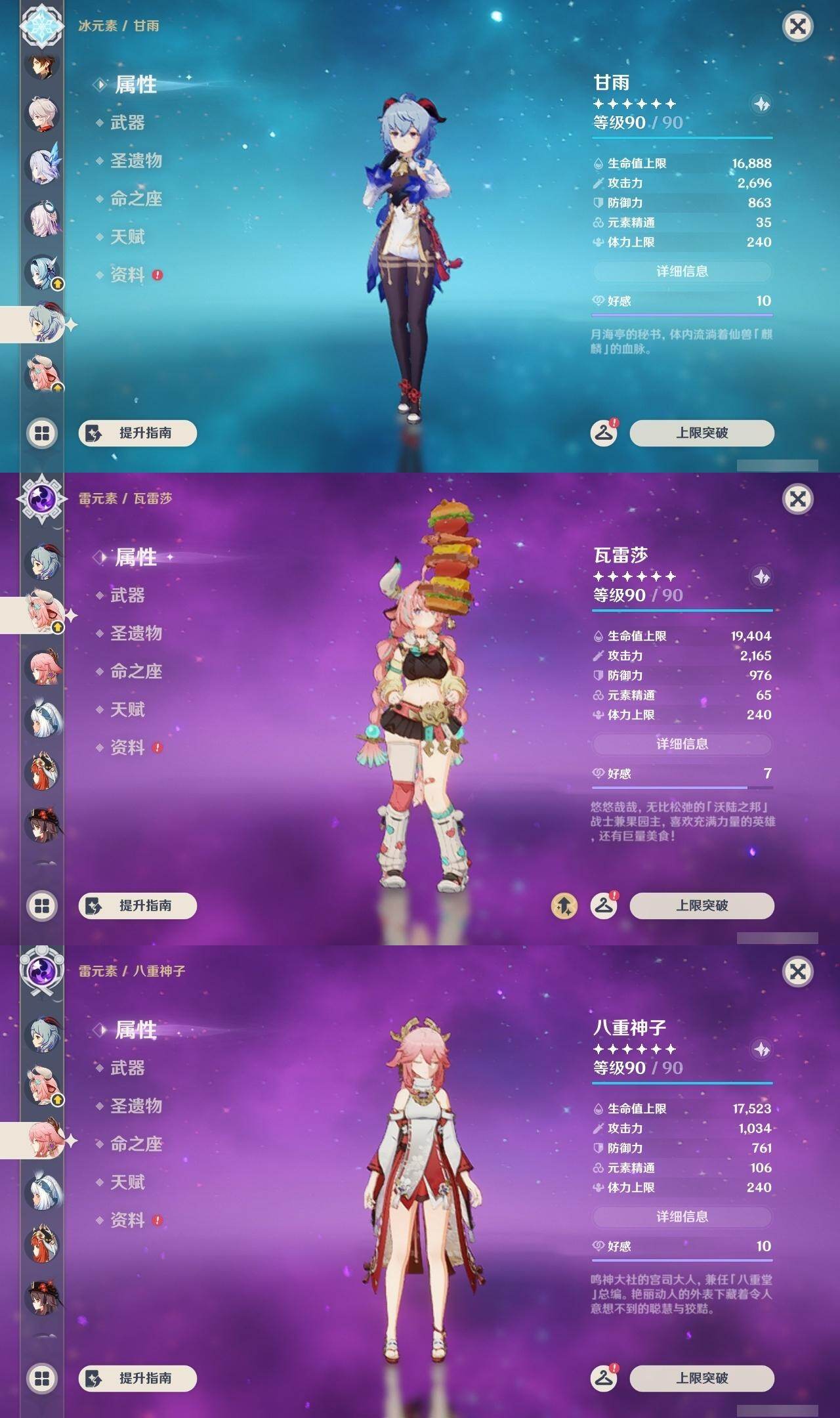 钟离,枫原万叶,优菈,甘雨,八重神子,胡桃,魈,温迪,琴,申鹤,神里凌华,雷电将军,达达利亚,莫娜,迪卢克,刻晴,七七