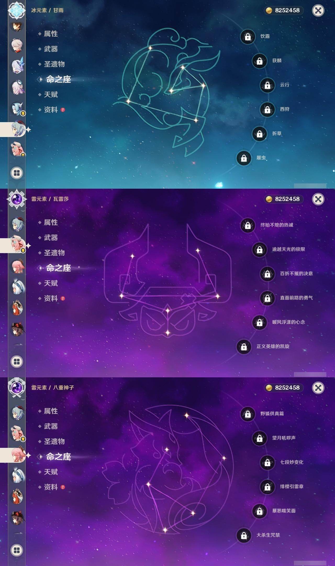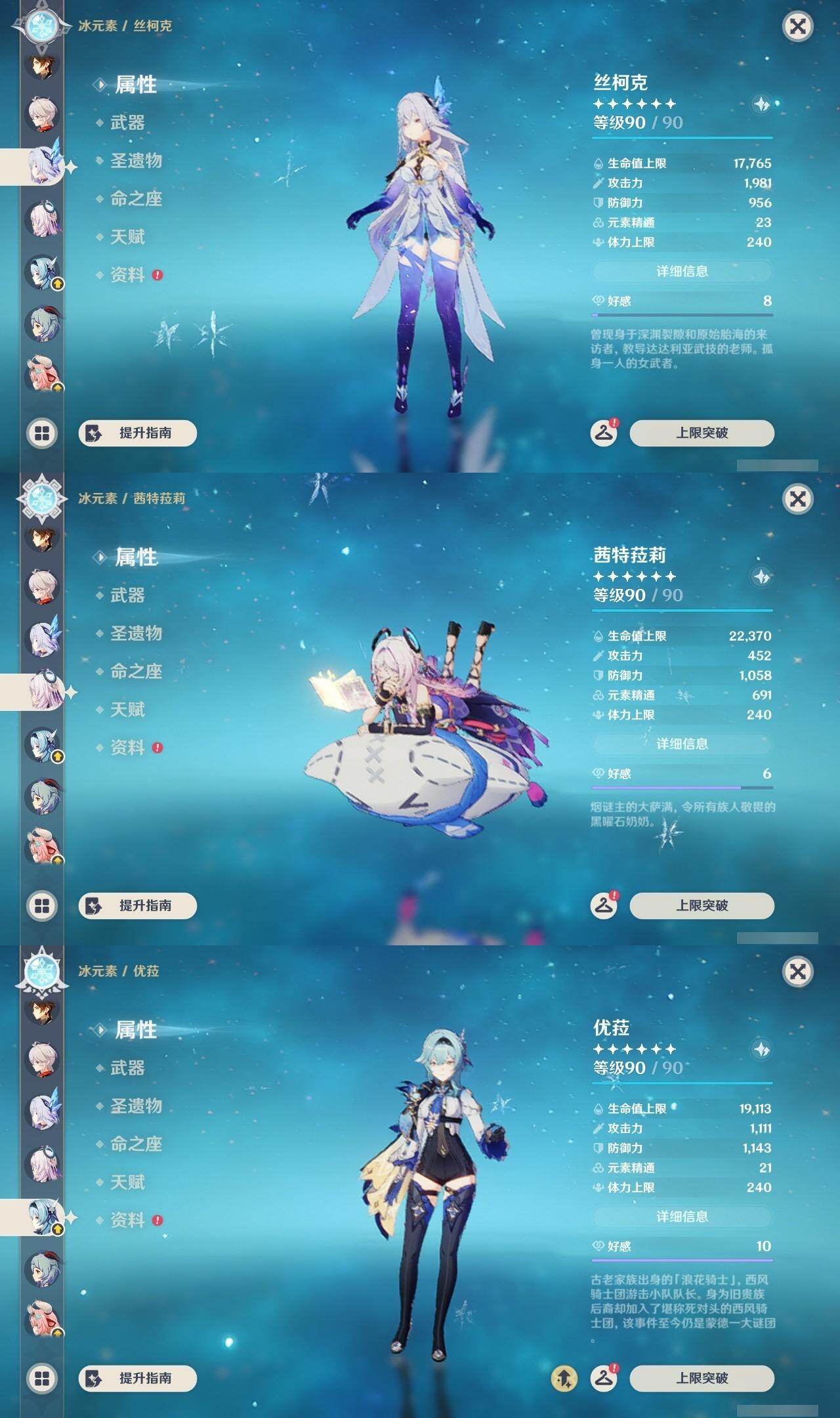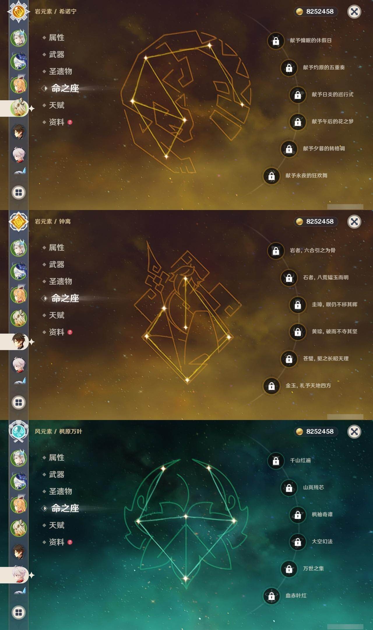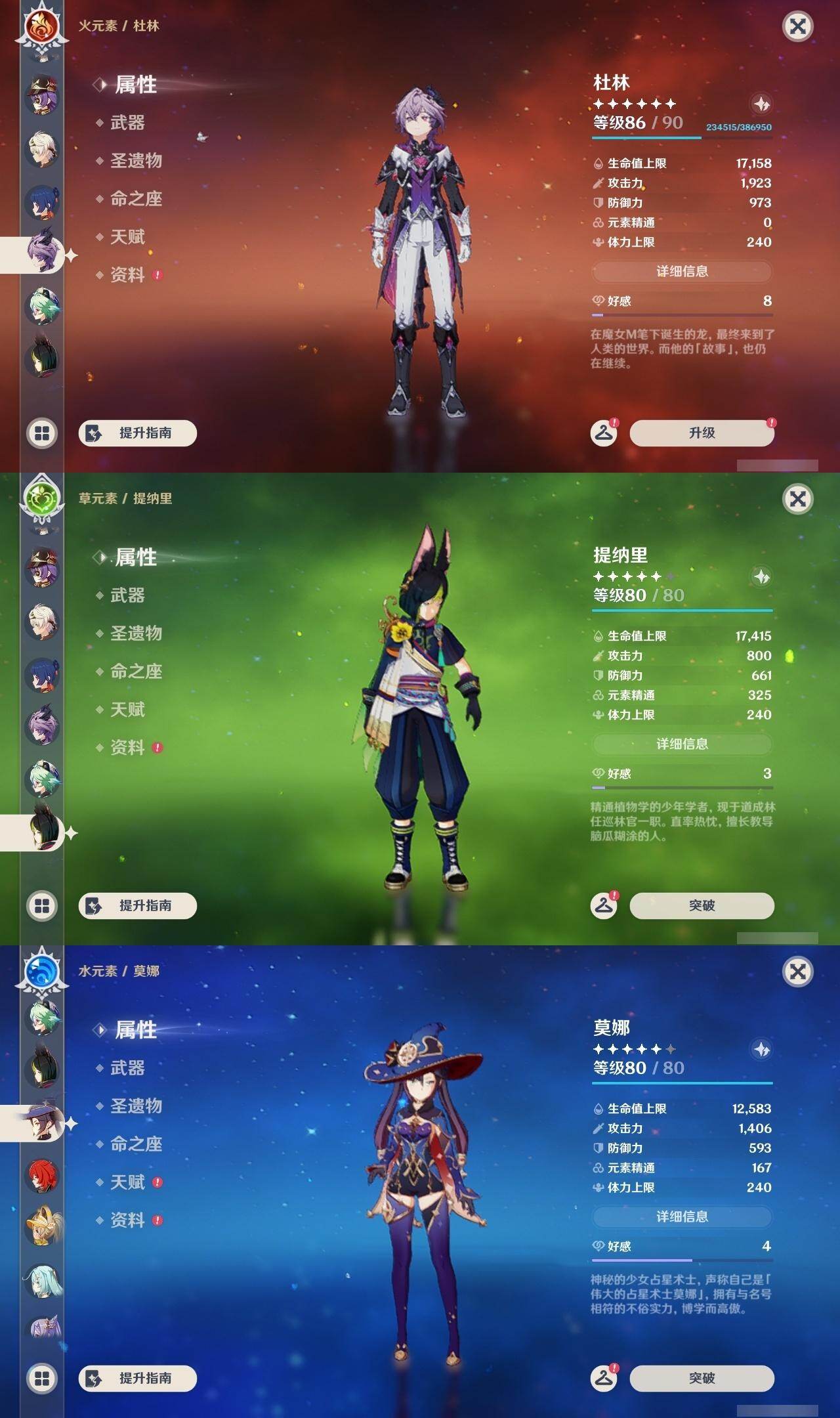 钟离,枫原万叶,优菈,甘雨,八重神子,胡桃,魈,温迪,琴,申鹤,神里凌华,雷电将军,达达利亚,莫娜,迪卢克,刻晴,七七