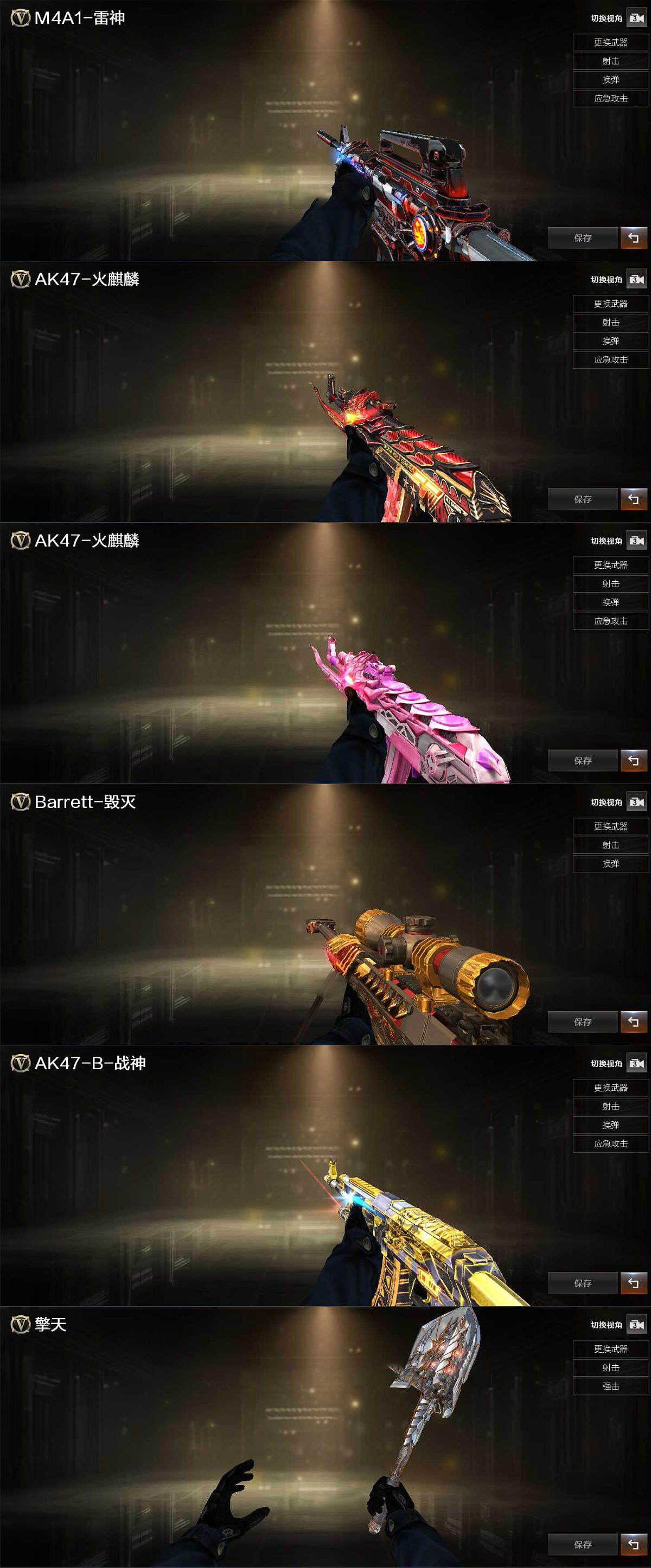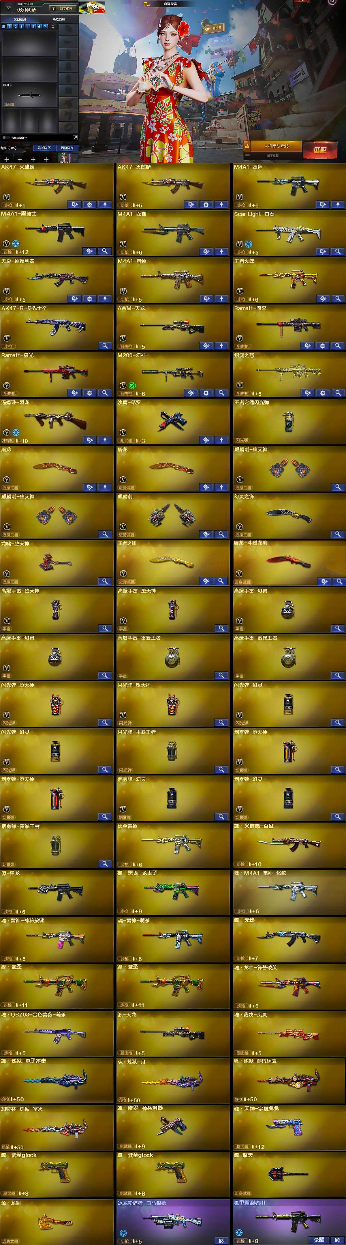 【源级武器】:魂·火麒麟-百城,御·火麒麟-平天大圣,源-黑龙,御·黑龙-龙太子,魂·M4A1-雷神-化蛇,魂·雷神-神秘按键,魂-雷神-萌杀,源·无影,源·武圣*2,魂·龙血-锋芒破茧,魂·QBZ03-金色蔷薇-萌杀,源·天龙,魂·裁决-凤灵,源·毁灭,御·毁灭-葫芦兄弟,魂·炼狱-电子连击,魂·炼狱-月,魂·炼狱-蒸汽钟表,加特林-炼狱-掌火,魂·修罗-神兵利器,魂·天神-宇航兔兔,源·武圣glock*2,源-擎天,源·龙啸