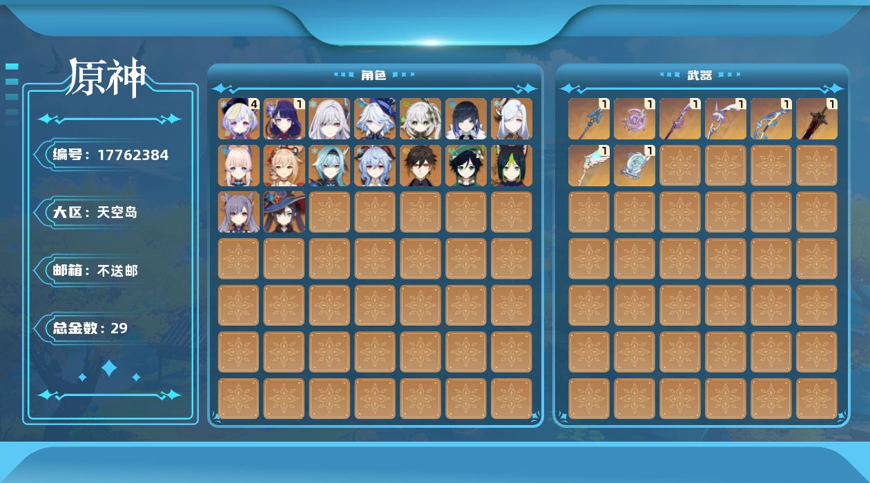 [17762384]58级/29黄/男主/16个五星角色/8个五星武器