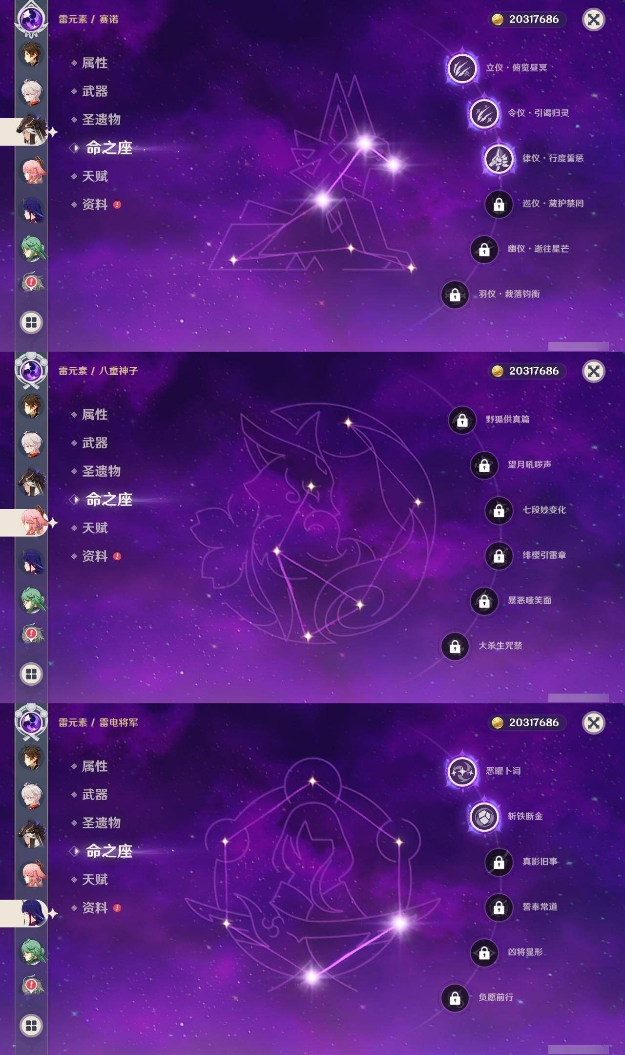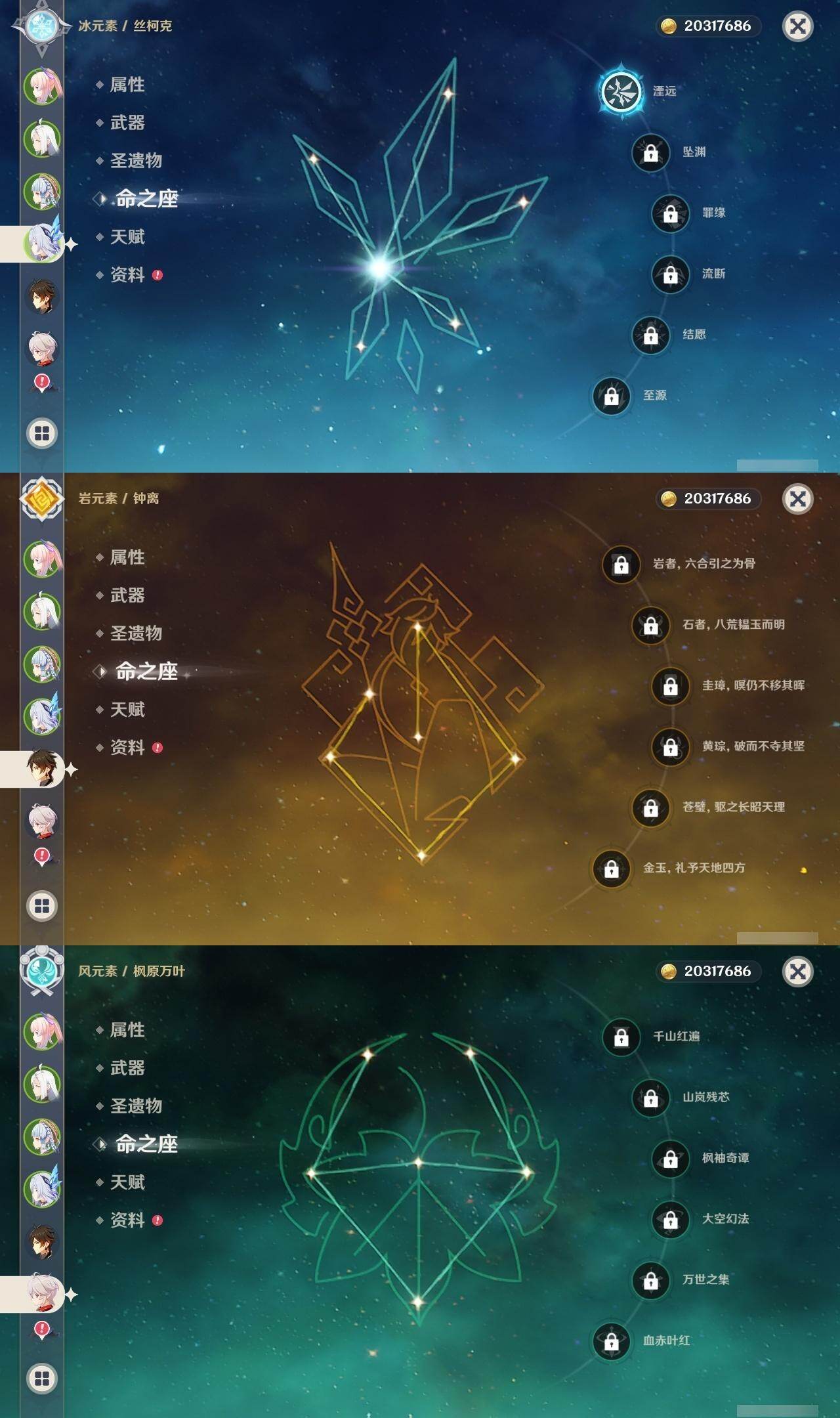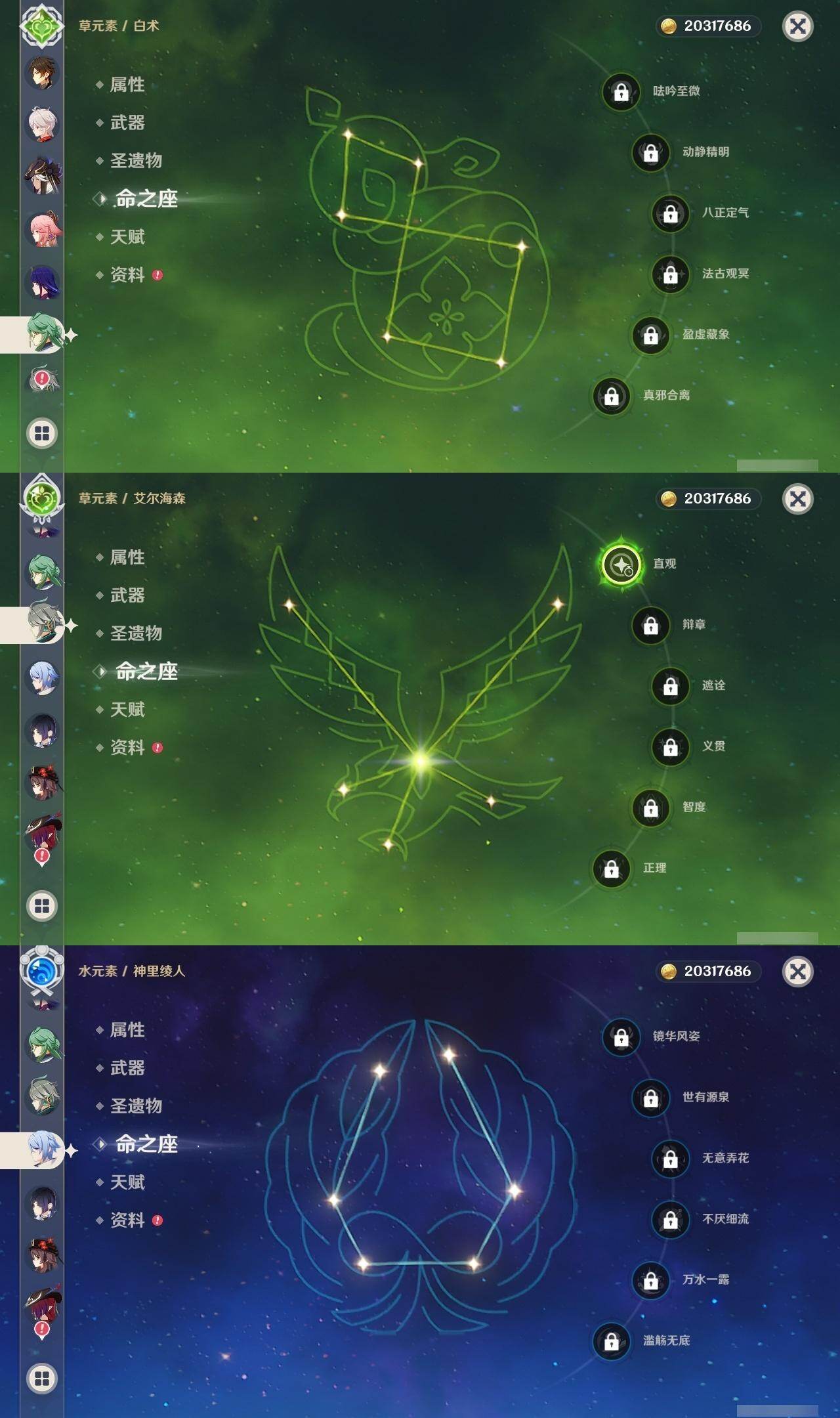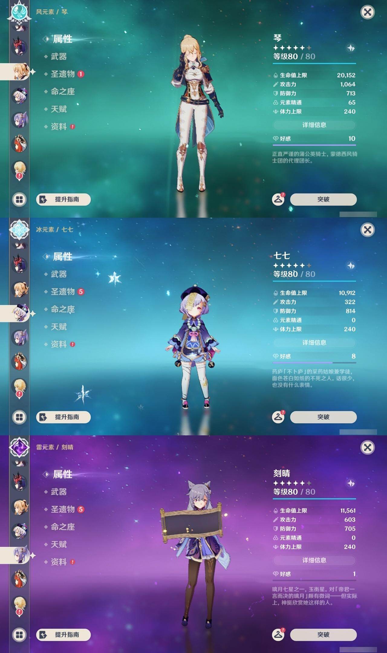 1命阿蕾奇诺,0命闲云,0命那维莱特,0命林尼,0命白术,1命艾尔海森,0命流浪者,0命纳西妲,0命妮露,3命赛诺,1命夜兰,0命神里绫人,0命八重神子,0命申鹤,0命荒泷一斗,0命优菈,2命雷电将军,0命枫原万叶,满命神里绫华,0命钟离,0命胡桃,0命甘雨,0命魈,0命宵宫,0命温迪,0命可莉,0命阿贝多,0命珊瑚宫心海,0命刻晴,满命七七,4命琴,满命莫娜,1命迪卢克,0命恰斯卡,1命丝柯克,精1万世流涌大典,精1裁叶萃光,精1赤沙之杖,精1若水,精1波乱月白经津,精1神乐之真意,精1息灾,精1终末嗟叹之诗,精1薙草之稻光,精1雾切之回光,精1无工之剑,精1护摩之杖,精4四风原典,精2和璞鸢,精1天空之翼,精1天空之刃,精1天空之卷