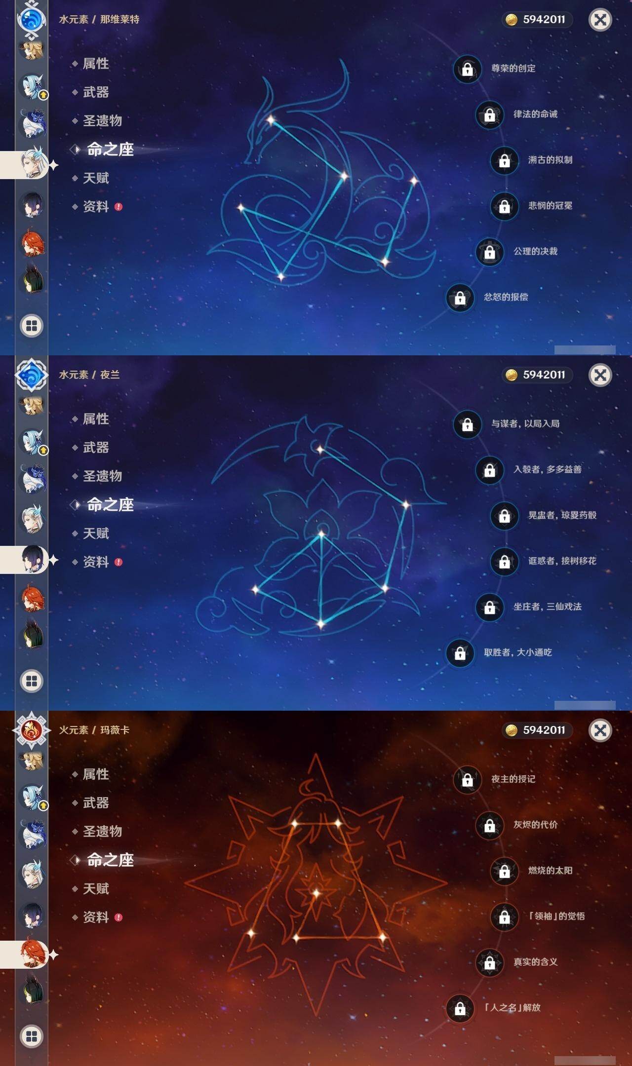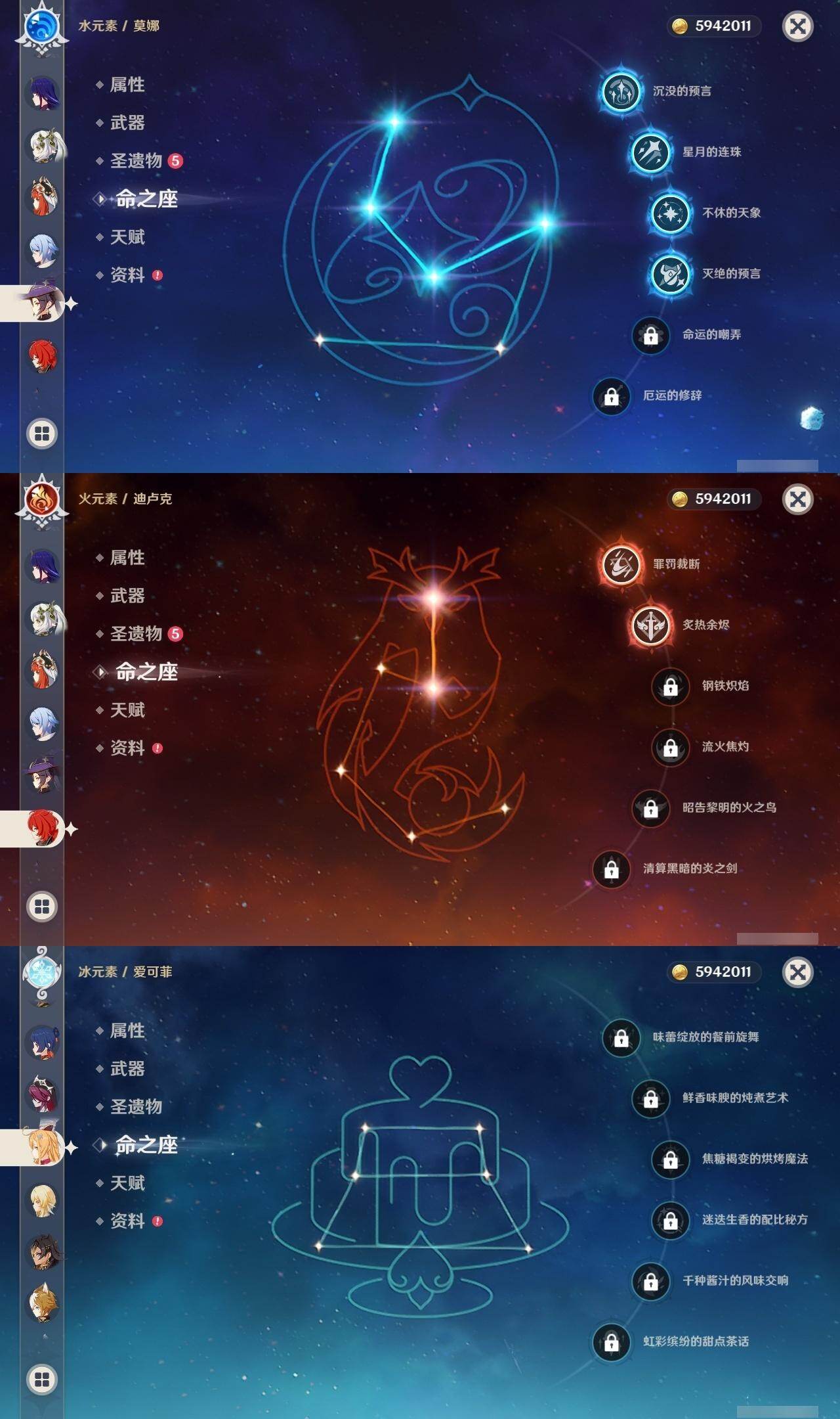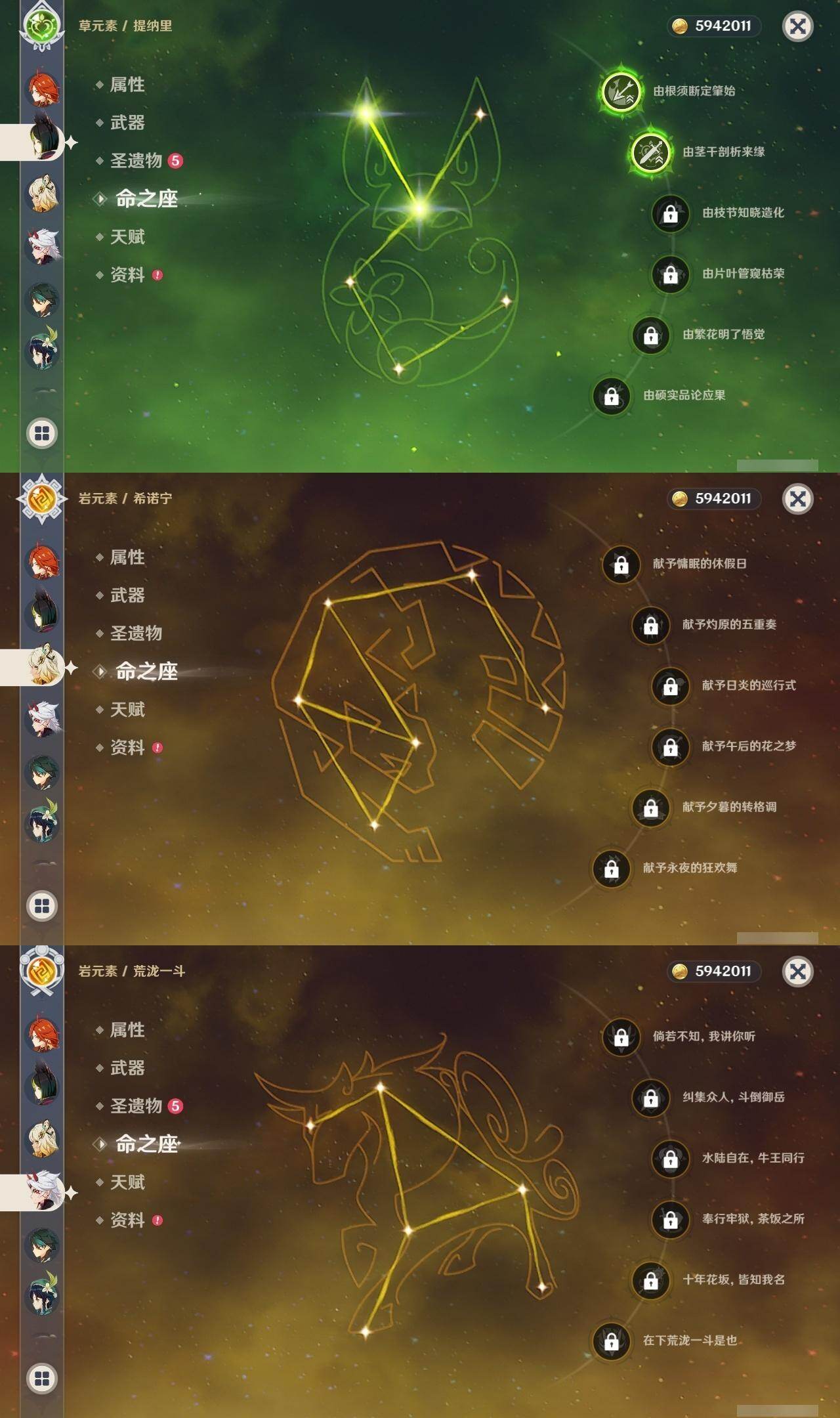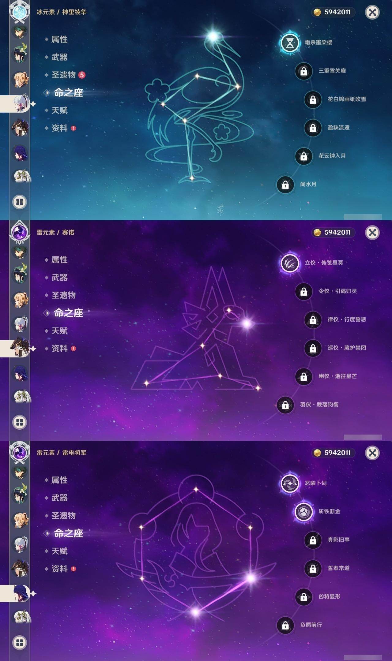 1命阿蕾奇诺,0命娜维娅,0命芙宁娜,0命那维莱特,1命迪希雅,0命纳西妲,0命妮露,1命赛诺,2命提纳里,0命夜兰,0命神里绫人,0命荒泷一斗,0命优菈,2命雷电将军,1命枫原万叶,1命神里绫华,1命钟离,2命魈,0命温迪,1命刻晴,1命七七,5命琴,4命莫娜,2命迪卢克,0命希诺宁,0命玛薇卡,0命爱可菲,精1赤月之形,精1万世流涌大典,精1千夜浮梦,精1圣显之钥,精1若水,精1赤角石溃杵,精1薙草之稻光,精1雾切之回光,精1苍古自由之誓,精3和璞鸢,精2天空之脊,精1天空之翼,精1阿莫斯之弓,精1天空之刃,精1风鹰剑,精1狼的末路,精1天空之傲,精1柔灯挽歌