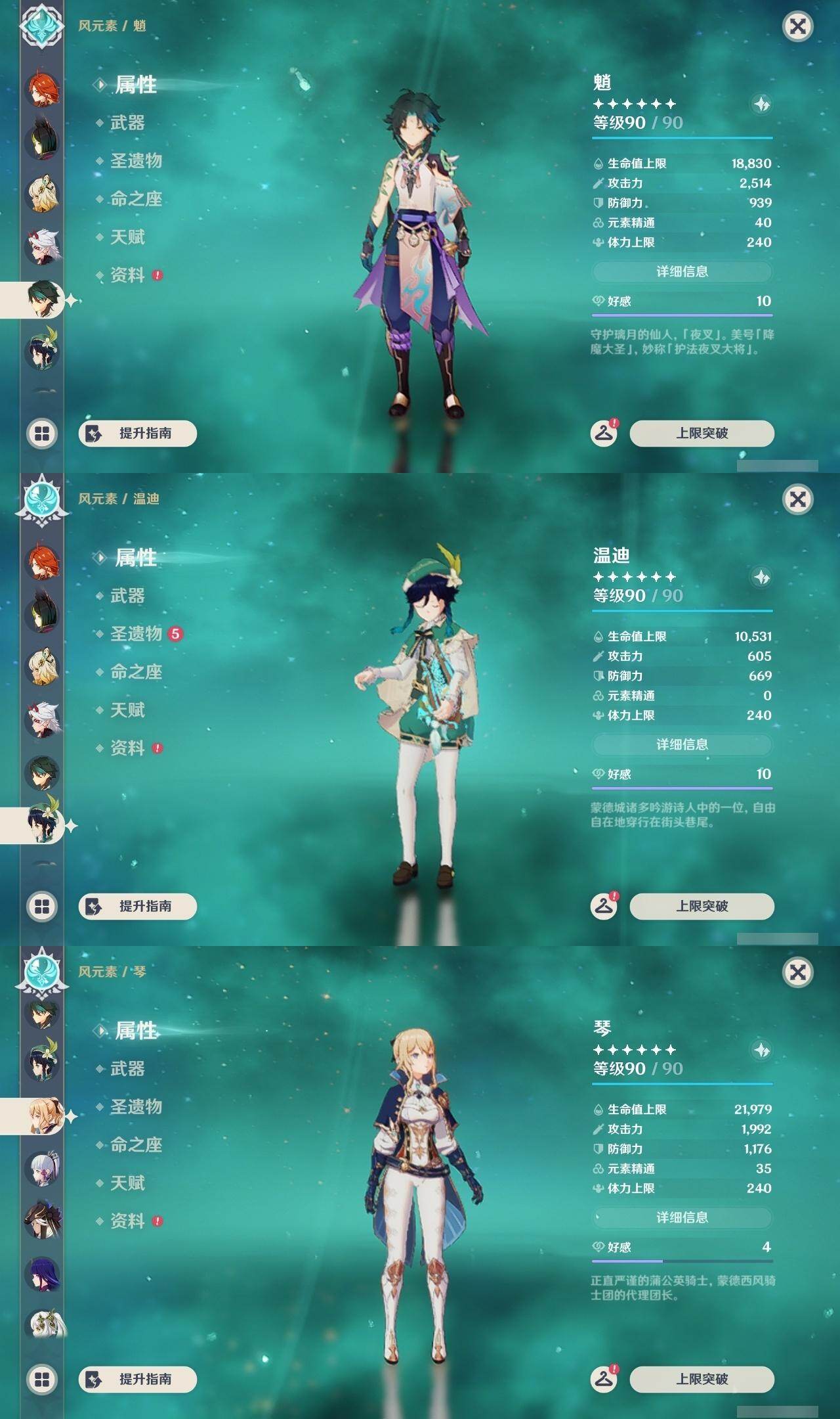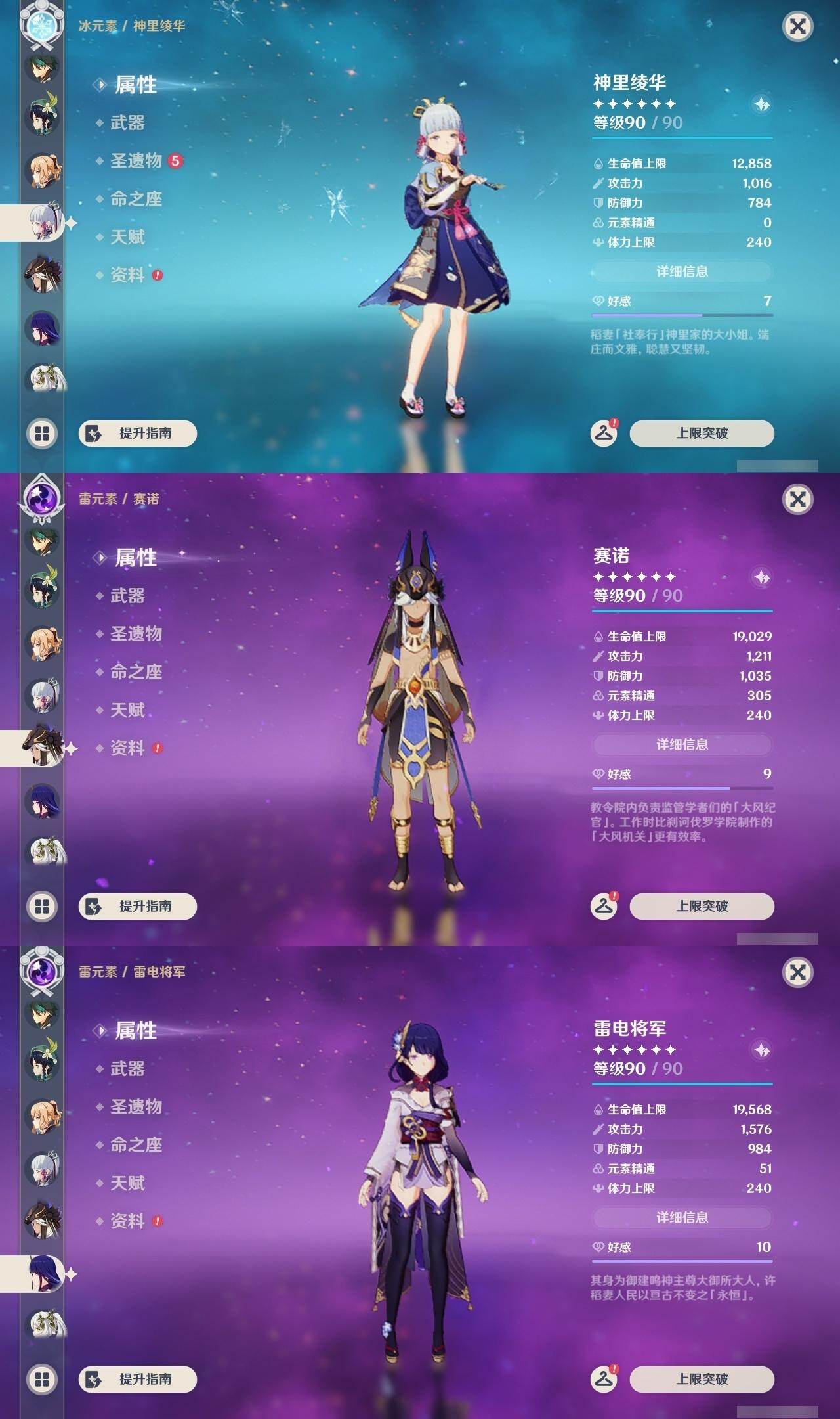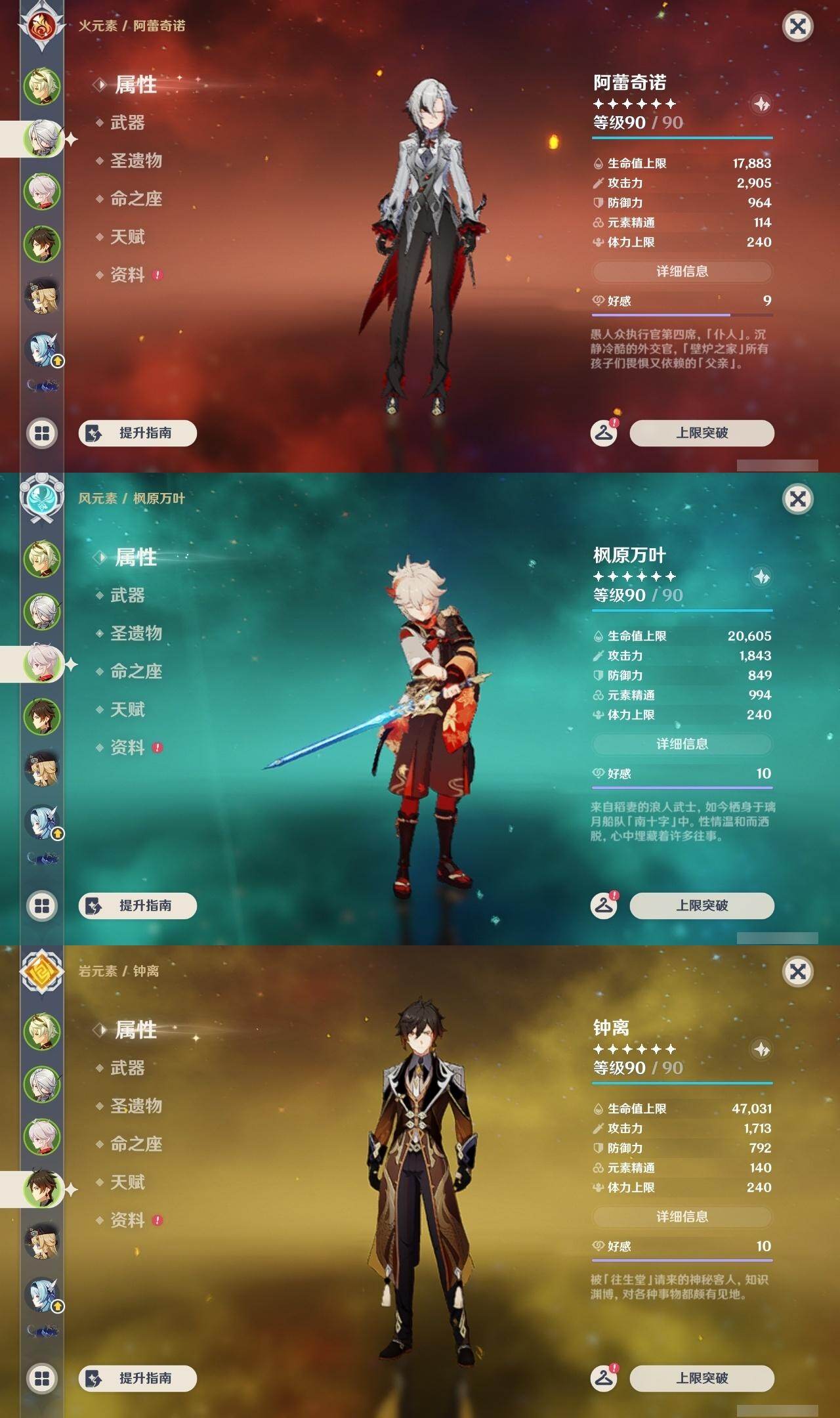 枫原万叶,钟离,优菈,荒泷一斗,魈,温迪,琴,神里凌华,雷电将军,莫娜,迪卢克,刻晴,七七
