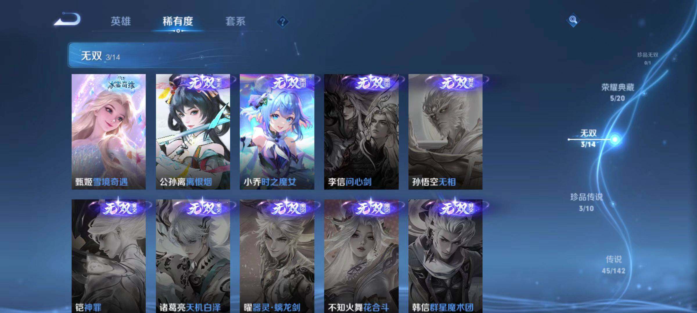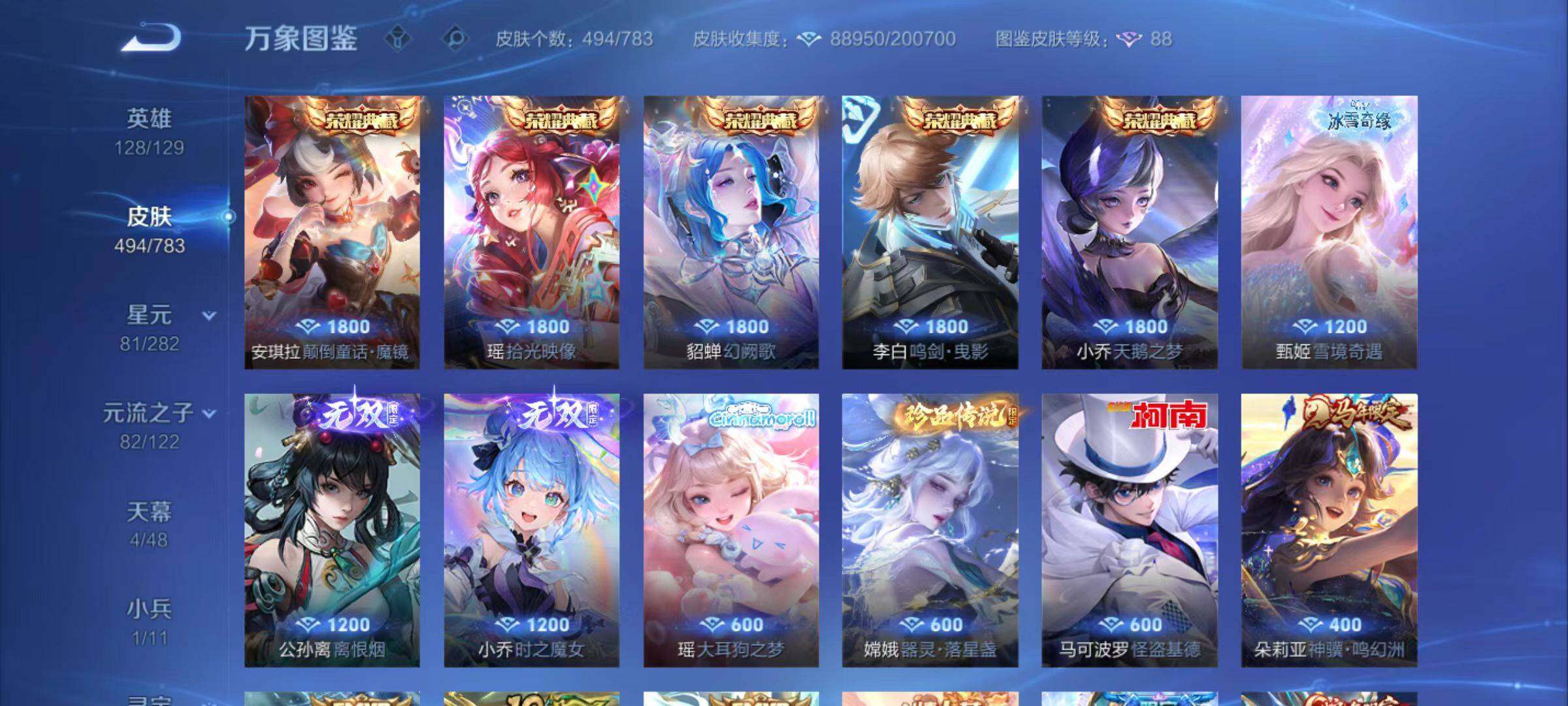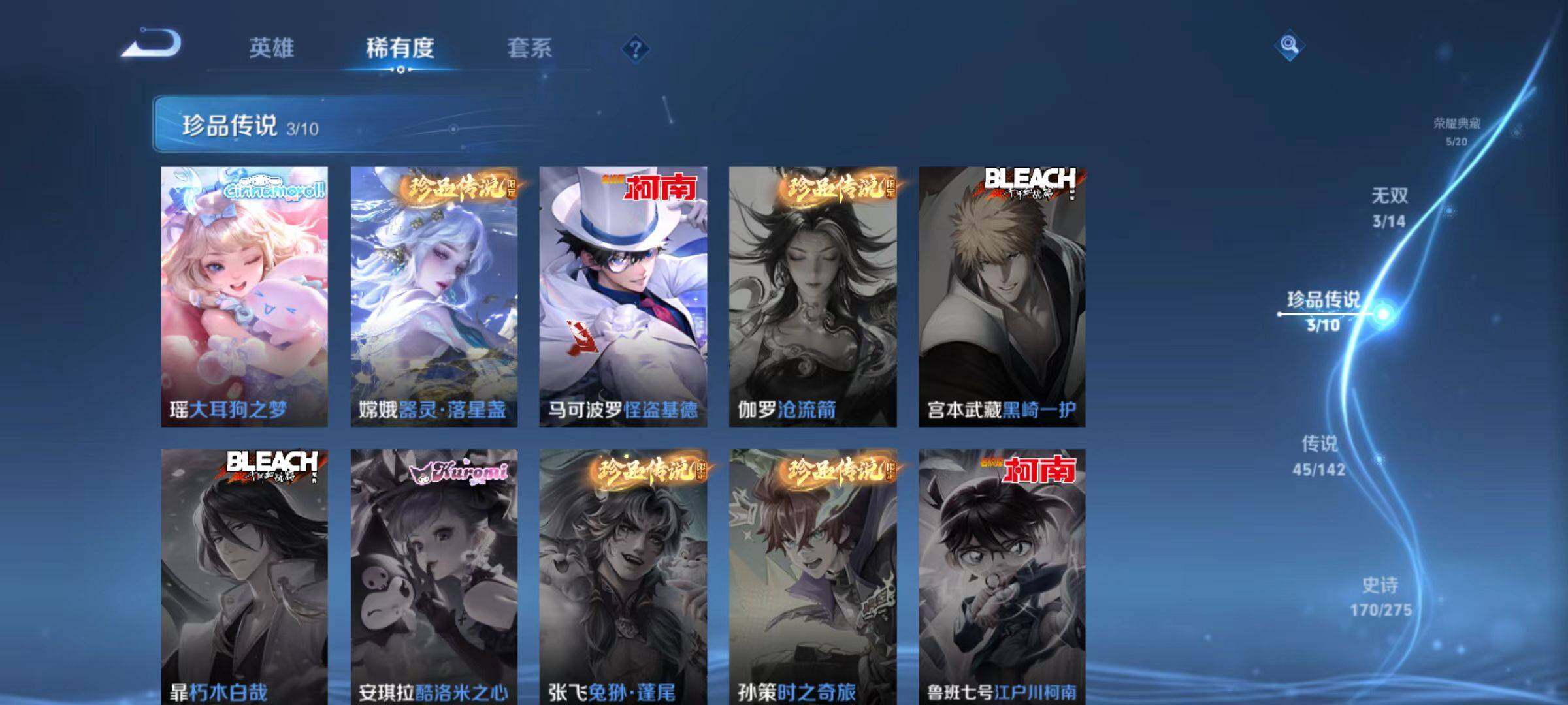 [17764581]安卓Q-V10-494皮肤-5典藏皮肤-3无双-3珍品传说-45传说-169史诗