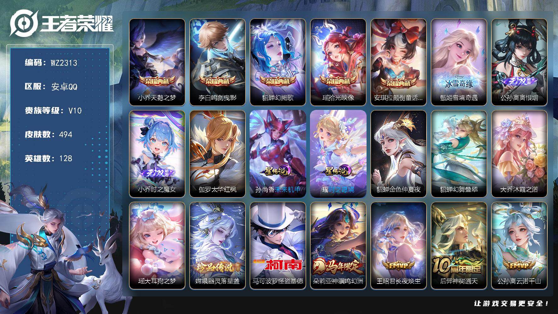 - [15755699]【店主推荐捡漏号!可直接换绑】安卓Q-V9-最强王者段位-127英雄-245皮肤-3典藏皮肤-1典藏英雄-1无双-20传说-78史诗-2星元 【英雄全皮】:孙权全皮 【荣耀典藏】:武则天英雄,孙悟空全息碎影,李白鸣剑曳影,诸葛亮星域神启 【无双皮肤】:韩信群星魔术团 【传说皮肤】:后羿神树通天,桑启鸣野蒿,云中君群星魔术团,娜可露露前尘镜,孙策挚爱之约,鲁班七号寅虎瑞焰,貂蝉遇见胡旋,赵云淬星耀世,小乔音你心动,铠绛天战甲,镜炽阳神光,虞姬启明星使,曜云鹰飞将,李信一念神魔,貂蝉猫影幻舞,张良黄金白羊座,干将莫邪久胜战神,达摩黄金狮子座,孙尚香末日机甲,宫本武藏地狱之眼 【限定皮肤】:姜子牙天穹之誓,狄仁杰阴阳师,赵云皇家上将,妲己热情桑巴,鲁班七号寅虎瑞焰,庄周高山流水,高渐离死亡摇滚,钟无艳超时空战士,白起夜都怪侠,芈月幻夜卜梦,周瑜赤莲之焰,元歌无心,甄姬女儿国国王,甄姬游园惊梦,甄姬落雪兰心,马可波罗山海玄木吟,狄仁杰魔术师,达摩沙漠行僧,项羽海滩派对,貂蝉遇见胡旋,露娜一生所爱,韩信傲雪梅枪,王昭君午后时光,兰陵王金庭之子,娜可露露前尘镜,孙悟空孙行者,后羿如梦令,后羿圣弓游侠,李元芳云中旅人,虞姬启明星使,杨玉环遇见飞天,干将莫邪冰霜恋舞曲,干将莫邪胡桃夹子,干将莫邪真爱魔法,鬼谷子原初探秘者,鬼谷子五谷丰年,黄忠火炮绅士,苏烈千军破阵,百里守约朱雀志,梦奇顽趣,公孙离玉兔公主,沈梦溪星空之诺,沈梦溪大漠名商,沈梦溪匿光破解者,明世隐吟游魔法,裴擒虎李小龙,裴擒虎擒涛扼浪,狂铁电玩高手,孙策挚爱之约,嫦娥拒霜思,嫦娥暖冬兔眠,西施玲珑珍味,鲁班大师探海日志,桑启海盐诗旅,戈娅驭风魔法,艾琳流音漫舞,司空震地狱燃心,阿古朵江河有灵,张良古海寻踪,鬼谷子天穹祈灯,姬小满妄想食味,刘邦剑破天穹,上官婉儿群星魔术团,程咬金群星魔术团,韩信群星魔术团,云中君群星魔术团,关羽决胜骁骑,刘备异域游侠,周瑜熔金海岸 【年限皮肤】:百里守约朱雀志,鲁班七号寅虎瑞焰,马超神威,马可波罗山海玄木吟 【赛季限定】:达摩沙漠行僧,兰陵王金庭之子,张良古海寻踪,李元芳云中旅人,鬼谷子原初探秘者,苏烈千军破阵,梦奇顽趣,沈梦溪大漠名商,裴擒虎擒涛扼浪,鲁班大师探海日志,桑启海盐诗旅,鬼谷子天穹祈灯,刘邦剑破天穹,姜子牙天穹之誓 【战令限定】:钟无艳超时空战士,白起夜都怪侠,芈月幻夜