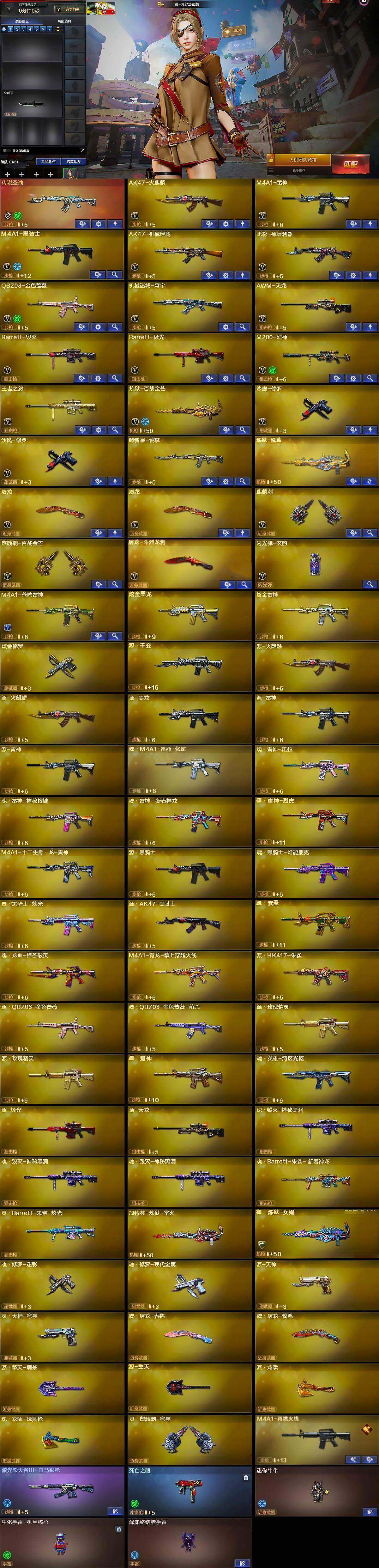 【源级武器】:源-千变,源·火麒麟*2,源-黑龙,源·雷神*2,魂·M4A1-雷神-化蛇,魂·雷神-诺拉,魂·雷神-神秘按键,魂·雷神-新春神龙,御·雷神-机甲刑天,御·雷神-烈虎,M4A1-十二生肖·龙-雷神,源·黑骑士,魂·黑骑士-幻能朋克,灵·黑骑士-炫光,源·AK47-黑武士,源·天启,源·武圣,魂·龙血-锋芒破茧,源·青龙,M4A1-青龙-掌上穿越火线,源·HK417-朱雀,源-金色蔷薇,魂·QBZ03-金色蔷薇-萌杀,源·玫瑰精灵*2,源·猎神,魂·英雄-湾区光枢,源-极光,源·天龙,魂·毁灭-神秘黑洞*3,魂·Barrett-朱雀- 新春神龙,灵·Barrett-朱雀-炫光,加特林-炼狱-掌火,御·炼狱-女娲,魂·修罗-迷彩,魂·修罗-现代金属,源·天神,灵·天神-穹宇,魂·屠龙-春桃,魂·屠龙-惊鸿,源·擎天-萌杀,源-擎天,源·龙啸,魂·龙啸-玩具枪,灵·麒麟刺-穹宇
