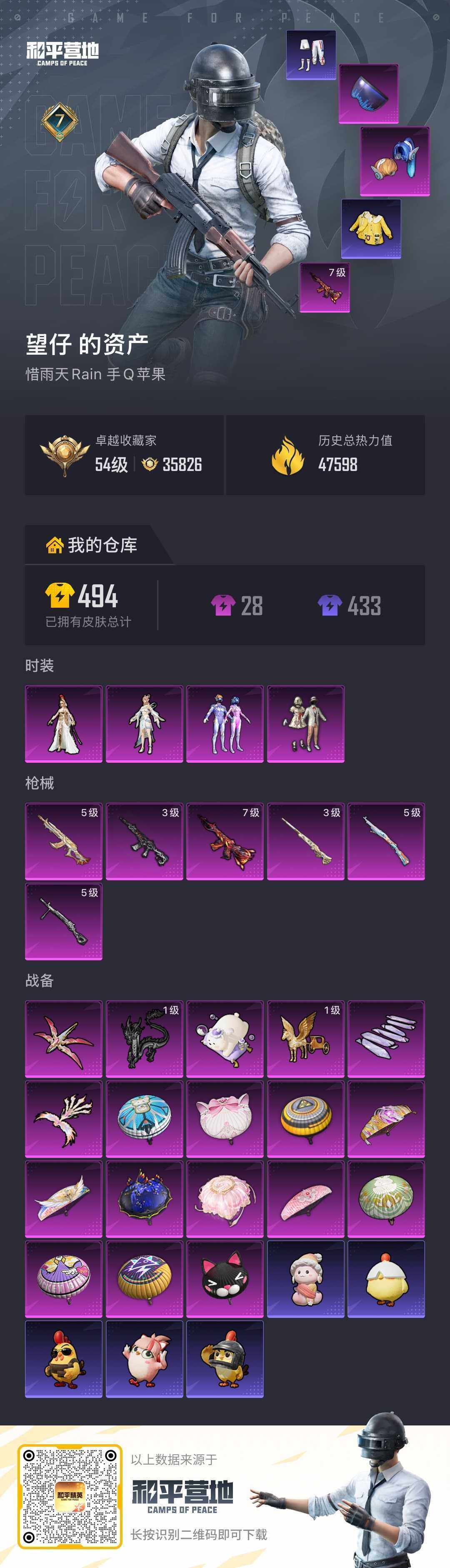 - [15981132]10英雄角色数-378英雄武器数 【王者系列】:王者之影,王者之魄,王者之心,王者之神,王者之锋,王者之迹,王者之蝶,王者之兽,王者之狱,王者之魂,王者幻神,王者之烈*2,王者之霆,王者之业,王者之誉,M4A1-雷霆王者,巴雷特-雷霆王者,M12S-雷霆王者,王者之尊 【热门武器】:KSG-孟获,CZS2-仲康,COP 357-安琪拉*2,AN94-盖,81式-光明之神,MK47-仁德,M4A1-七色宝葫,AK47-孟德,M4A1-仲达,AK47-奉先,M4A1-星象,M4A1-游骑兵,TAC-慈,VEPR12-本初,黑龙魂,81式-阿波罗,COP 357-雷霆*2 【角色】:葵,幽灵刀锋-觉醒,关小雨*2,晴雅,月神-X,甄梦,步练师*2 【英雄武器】:AK47-无影,AK47-火麒麟,AK47-机械迷城,AK47-孟德,AK47-猩红传说,AK47-燎天净火,AK47-奉先,AK47-黑鲨,AK47-木兰,AK47-谜城烟火*2,M4A1-雷神*2,M4A1-黑骑士*2,M4A1-死神,M4A1-游骑兵,M4A1-星象,M4A1-仲达,M4A1-竞界荣光,M4A1-七色宝葫,M4A1-机械迷城,M4A1-赛博雷神,M4A1-海骑士,M4A1-运输船*3,M4A1-猎神,M4A1-雷暴,M4A1-雷霆王者,M4A1-太白诗仙,M4A1-铁胆虎魄,SCAR-幽暗骑士*2,SCAR-幽暗骑士觉醒,SCAR Light-白虎,SCAR-探星者,SCAR-心动PICK,AN94-卷帘大将军,AN94-四凶觉醒,AN94-精卫填海,AN94-盖,AUG-机械纪元,FAMAS-湮灭,9A91-游骑兵,9A91-魔蜥觉醒,M14EBR-暗夜觉醒,M14EBR-天神,M14EBR-拂影,M14EBR-玄武,M14EBR-葫芦山庄,M16-恶魔,AK12-天启,QBZ03-金色蔷薇*2,QBZ03-死神,QBZ03-玉面羞花,HK416-极光,HK417-炎龙铠甲,81式-光明之神,QBZ19-天使*2,G36-李星云,MK47-云舞,MK47-仁德,G3A3-衍神兵*2,FN F2000-十绝阵觉醒,QBZ97-岚舞,QBZ97-浩瀚征途,QBZ191-金甲虎啸觉醒,QBZ191-封神榜,AWM-天龙,AWM-裁决,AWM-大湾溢彩,巴雷特-毁灭*6,巴雷特-极光*6,巴雷特-
