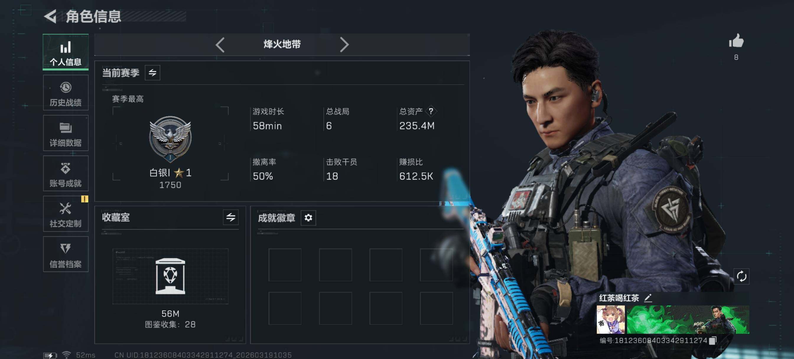 [17767543]可二次【特价出售/店主推荐】235m总资产-39978k哈夫币-60烽火等级-白银-50战场等级-上等兵